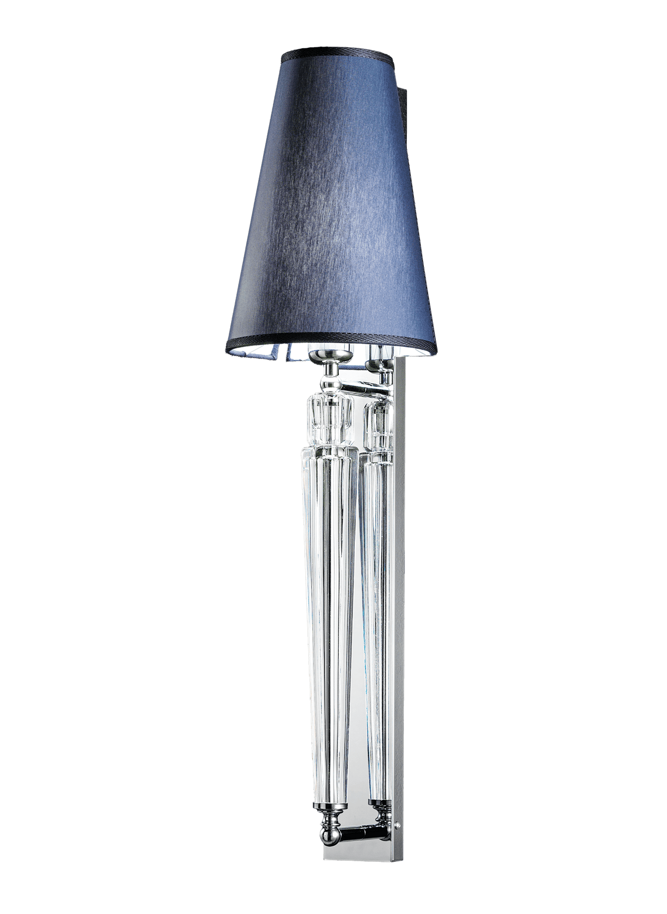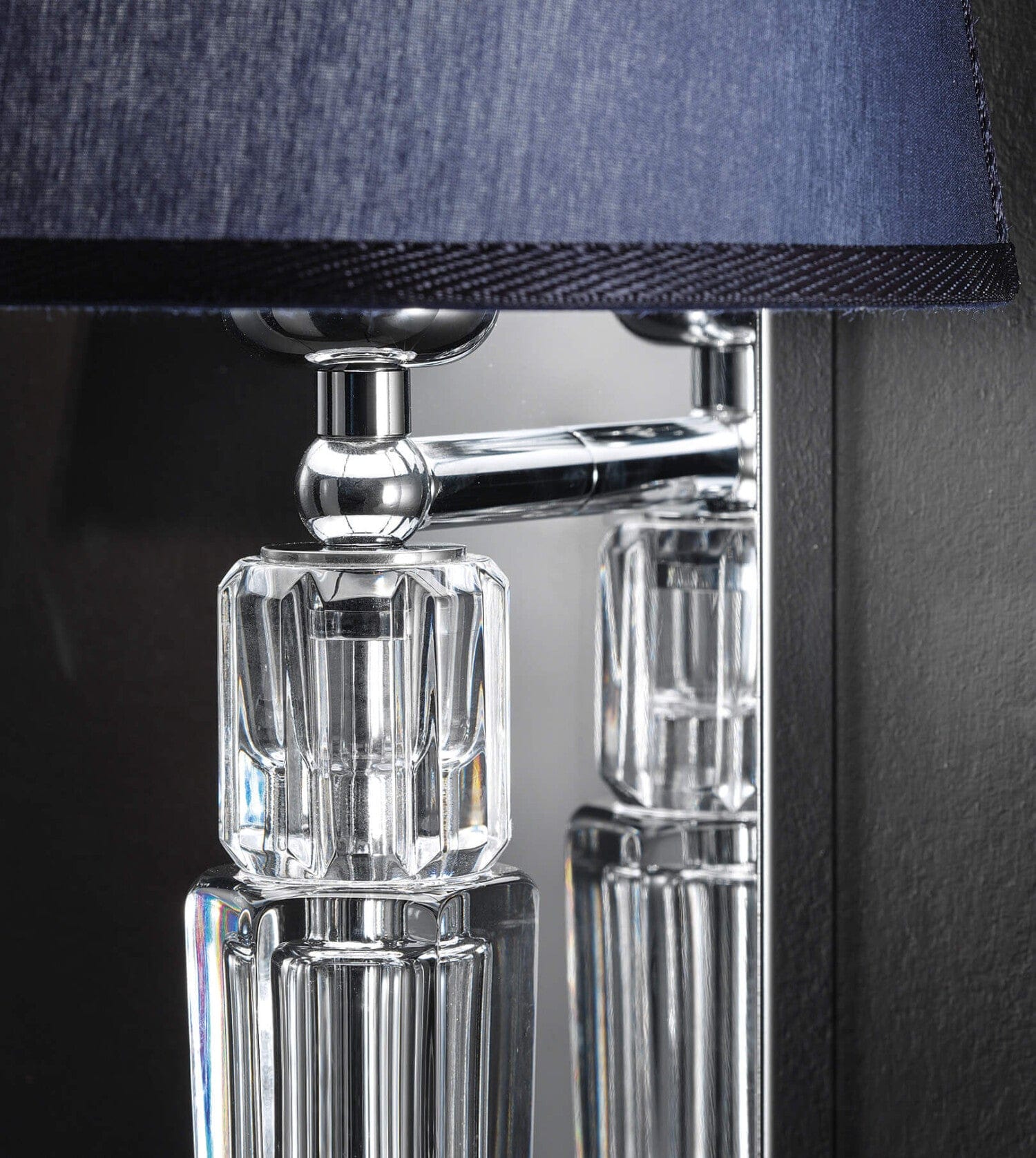 Applique murale et lampe de table design Spillo 8057/AP en cristal taillé avec structure métal finition chrome et abat-jour en tissu bleu pour un éclairage décoratif élégant - Fabrication en Italie