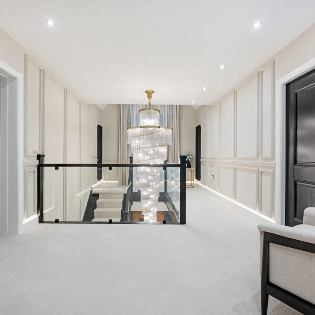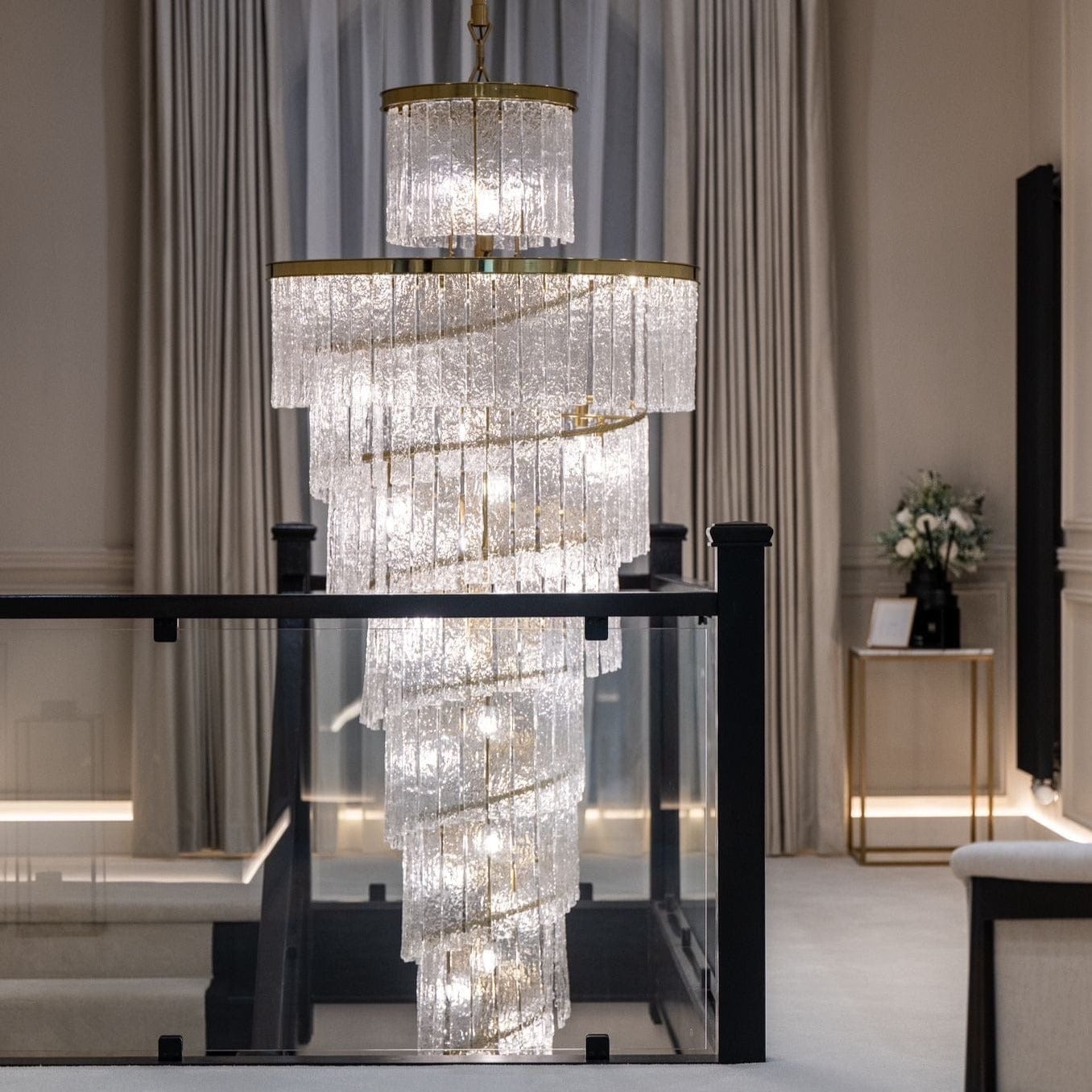 Ce grand lustre cristal salle révèle une composition majestueuse inspirée de l’architecture en escalier en colimaçon, où chaque cristal est disposé avec précision pour diffuser une lumière élégante et enveloppante. Son esthétique baroque affirme un caractère noble et intemporel, idéal pour magnifier un hall d’entrée, une cage d’escalier ou une salle de réception à hauts plafonds. L’alliance du cristal étincelant et de la structure métallique noire crée un contraste raffiné, renforçant la sensation de luxe et de profondeur visuelle.