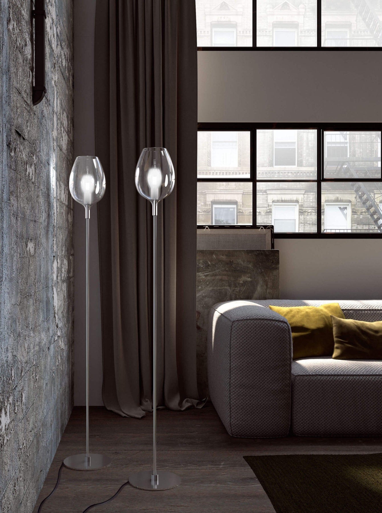 Lampadaire en verre gris pour chambre au style contemporain raffiné et à l’éclairage doux - fabrication Italie