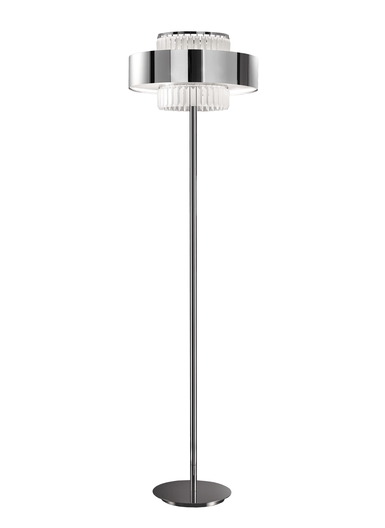 Lampadaire Salon Chrome et Cristal au style moderne pour créer un éclairage décoratif raffiné et lumineux dans un espace de vie élégant