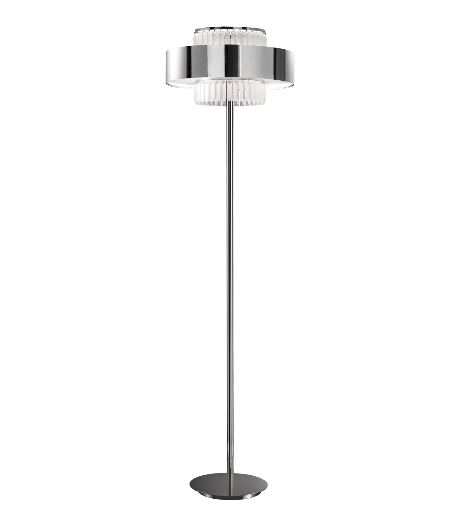 Lampadaire salon chrome et cristal conçu pour valoriser les volumes et renforcer le caractère décoratif d’un intérieur contemporain