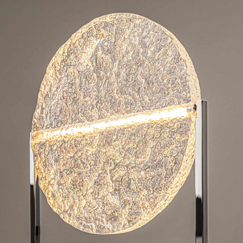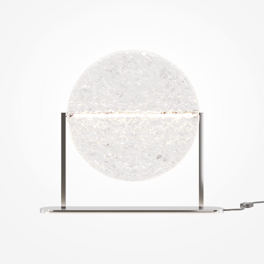 Mariant métal chromé et acrylique texturé, cette lampe offre une fusion parfaite entre technologie moderne et chaleur visuelle organique. Inspirée de la poésie lumineuse nordique, elle évoque la tranquillité des nuits scandinaves sous la lumière de la lune.