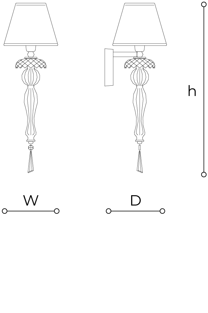 • Matériaux : corps en verre et cristal, pampilles en cristal, structure en métal, abat-jour en tissu blanc