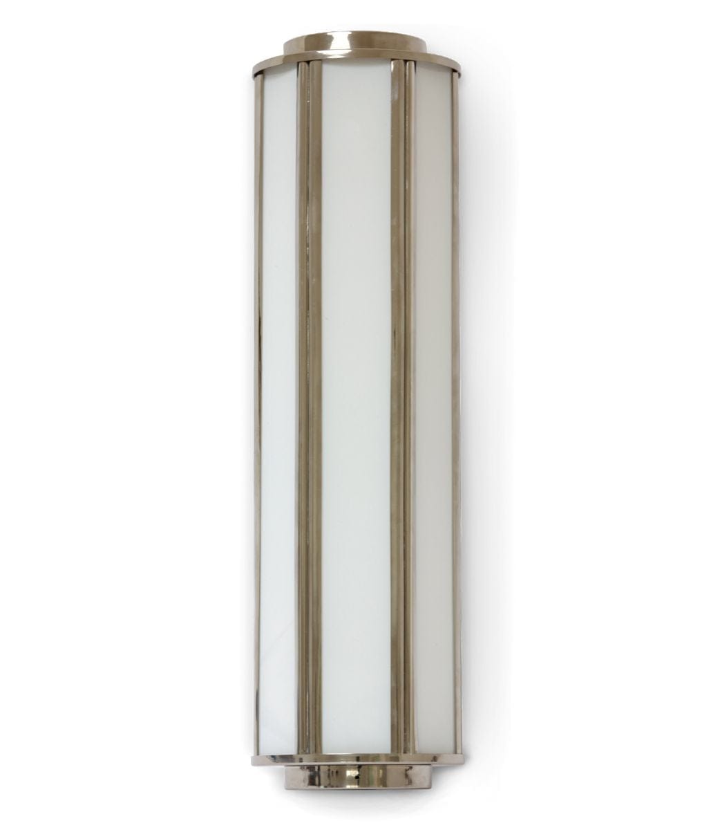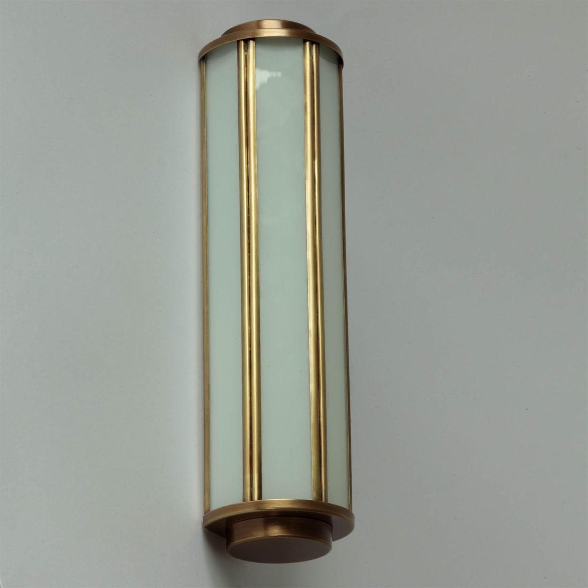 Découvrez une lampe murale longue rétro ancienne en laiton ou cuivre avec verre opalin et design rétro pour sublimer votre salle de bain ou espace piscine