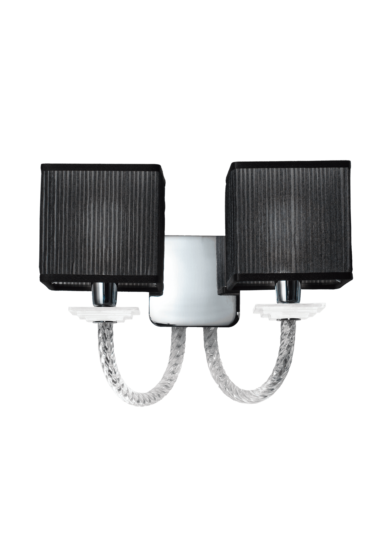 Cette wall lamp associe verre satiné et transparent, diffuseurs en tissu noir et bande décorative en cristal noir à une structure métallique finition chrome pour offrir un luminaire mural à la fois décoratif et fonctionnel. Son design moderne et élégant valorise les murs tout en diffusant une lumière douce et chaleureuse, idéale pour les salons, chambres ou couloirs à la recherche d’un éclairage raffiné.