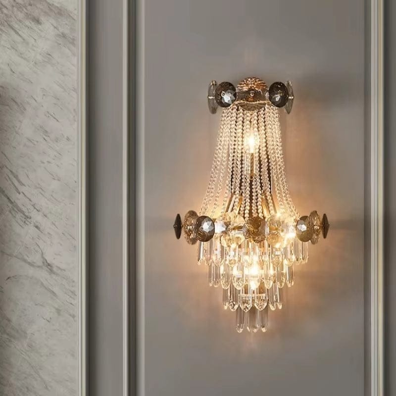 Applique murale en cristal de luxe pour un éclairage de fond élégant du salon, de la chambre ou d’un couloir au style européen haut de gamme