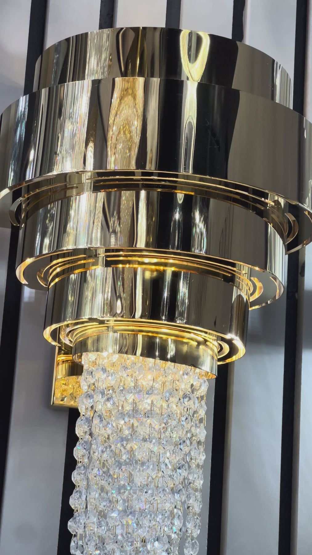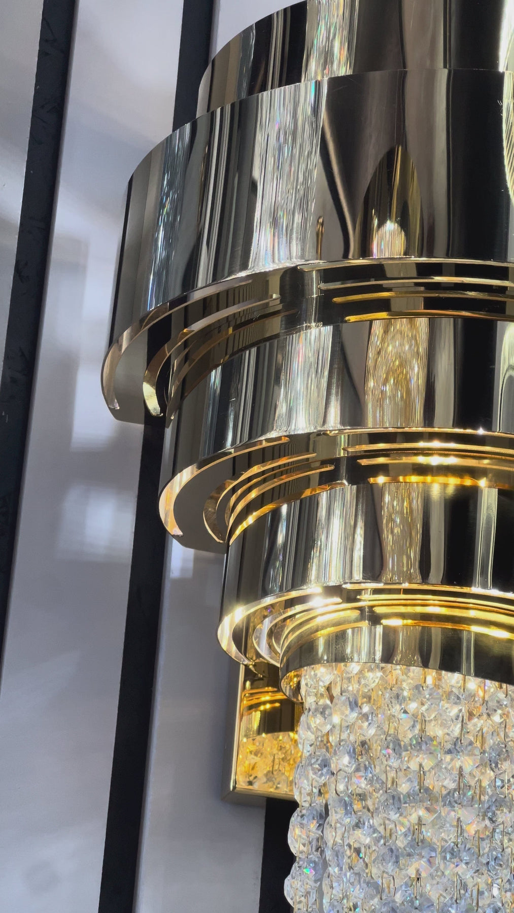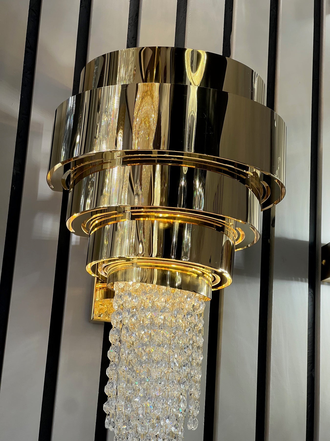 Design mural élégant et artisanal alliant cristal, acier inoxydable et finition haut de gamme pour un éclairage modulable et enchanteur