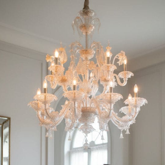 • Chandelier en verre de Murano soufflé à la main selon des techniques artisanales traditionnelles