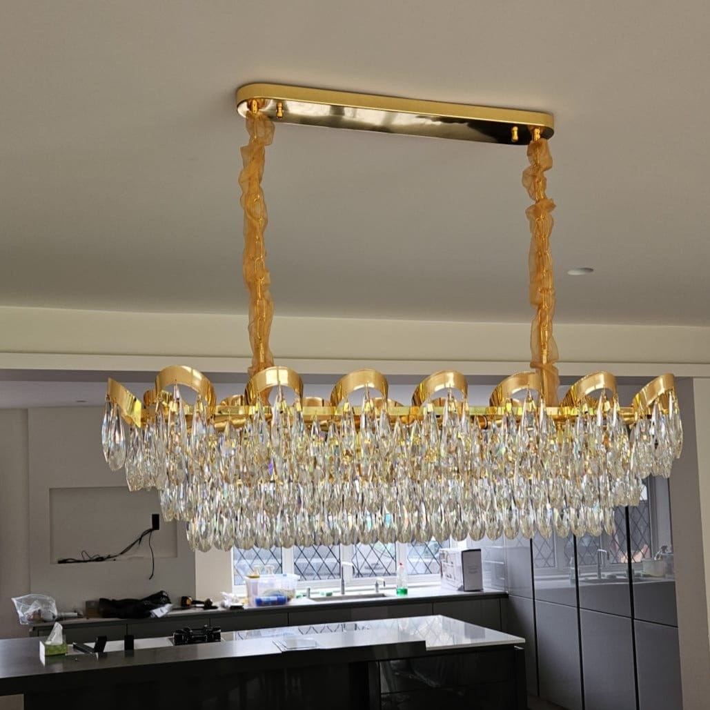 Pensé pour les intérieurs contemporains, ce lustre long pour salon gouttes cristal apporte une signature visuelle forte tout en optimisant l’éclairage d’ambiance. Les gouttes en cristal captent et réfléchissent la lumière pour créer une atmosphère chaleureuse et valorisante. Sa forme allongée convient parfaitement aux grandes tables, aux salons ouverts et aux espaces commerciaux recherchant une présence décorative marquée et élégante.