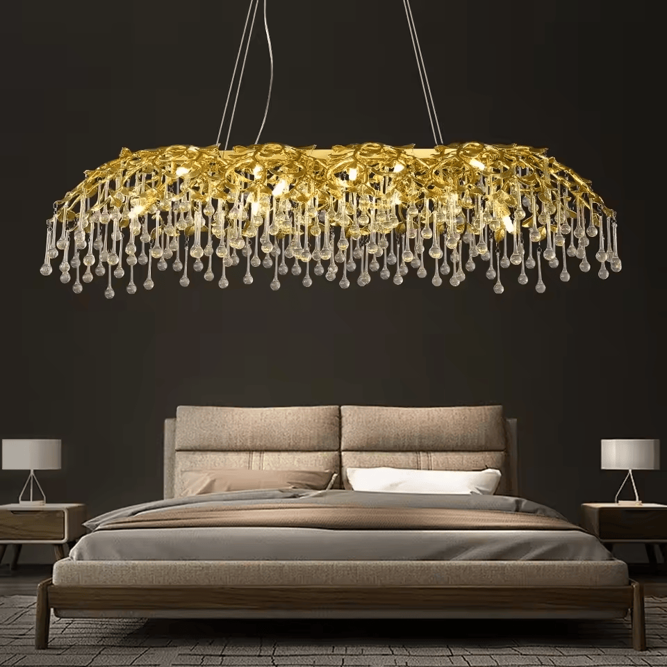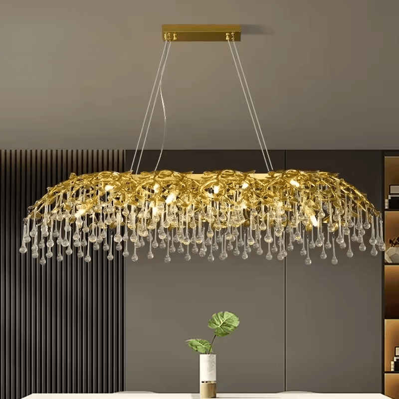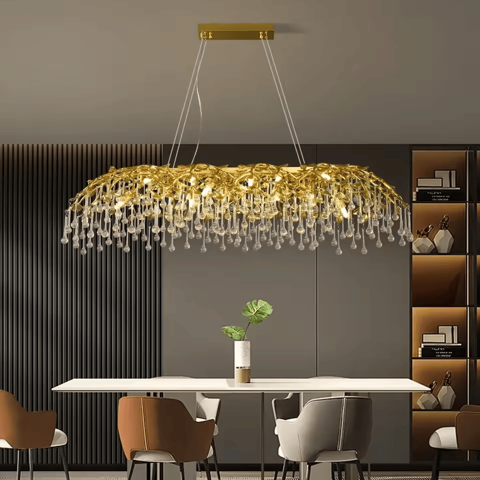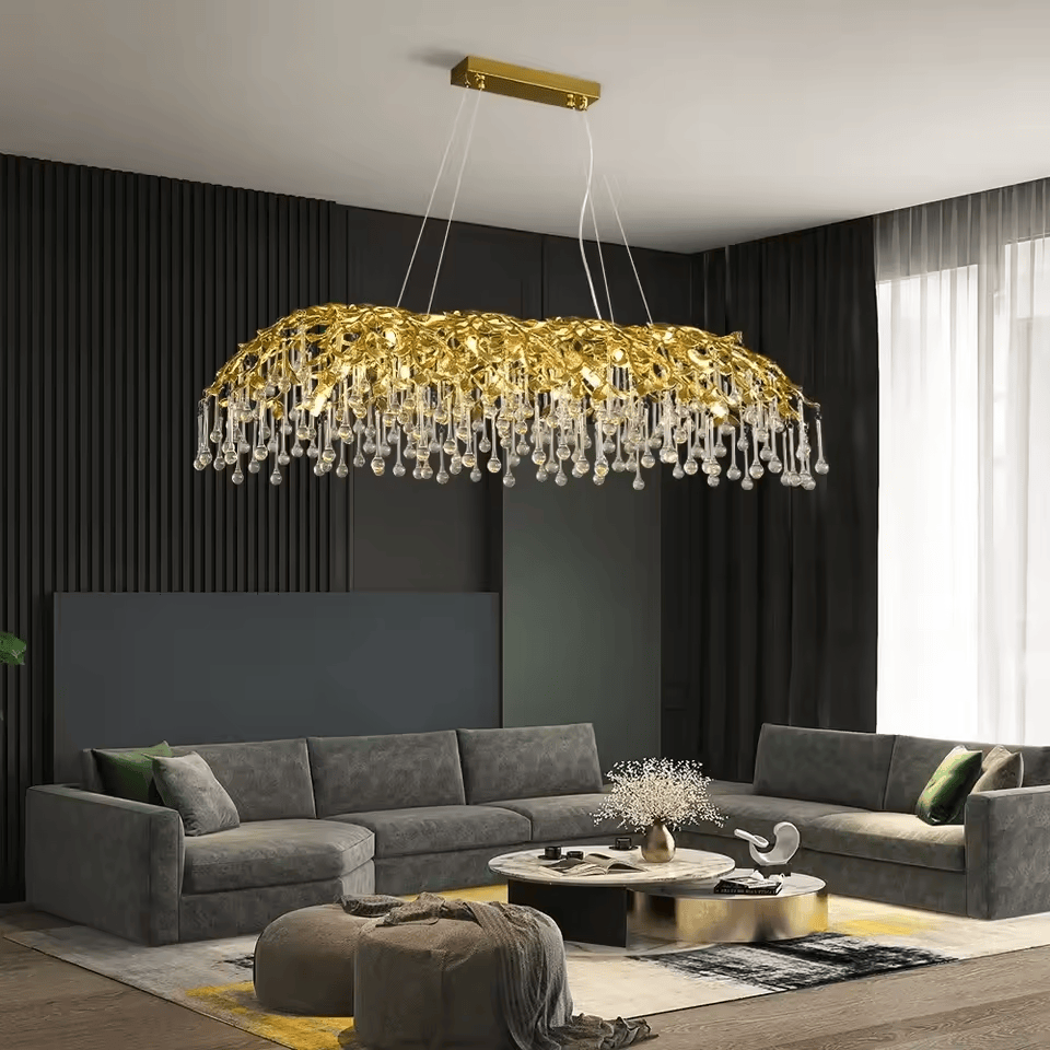Plafonnier de luxe avec cristaux en pluie : une touche d'élégance pour votre salon