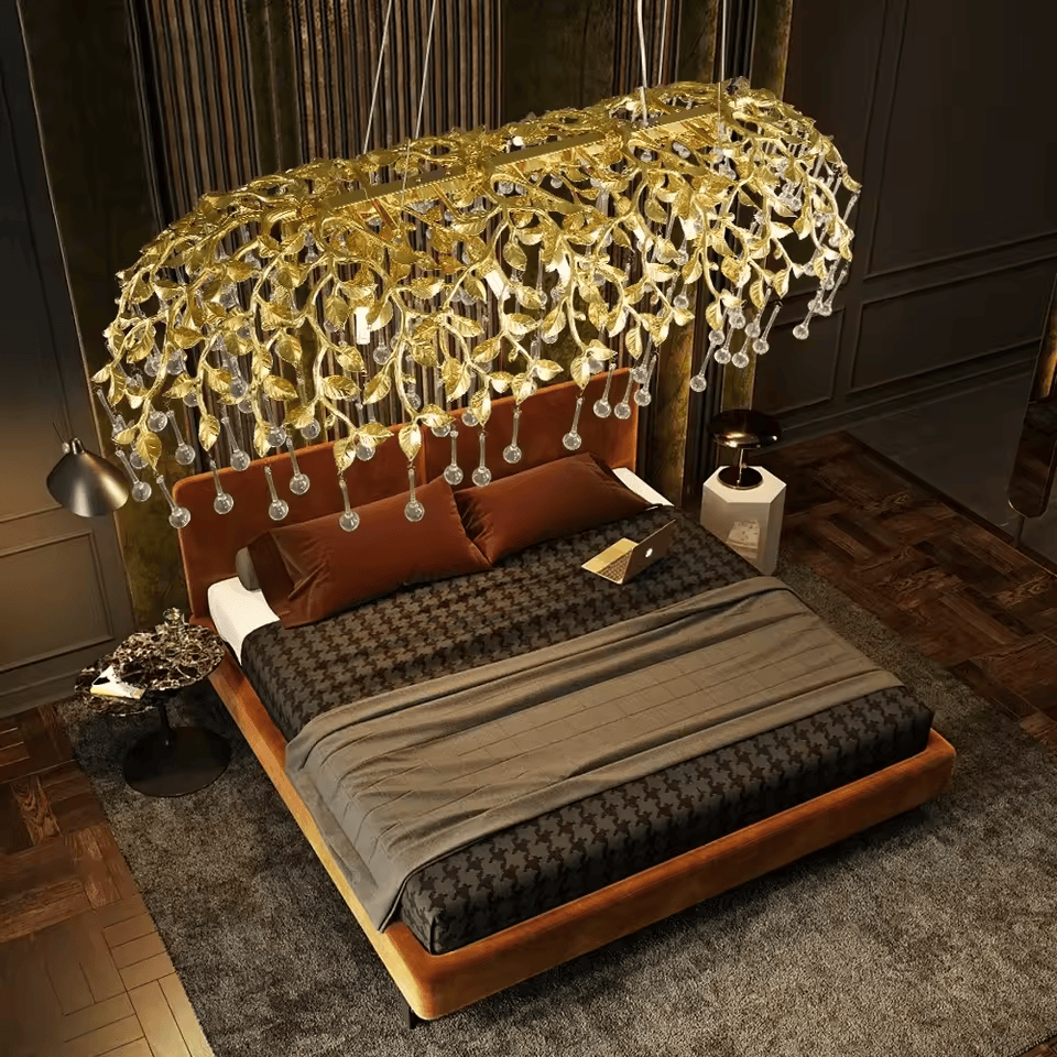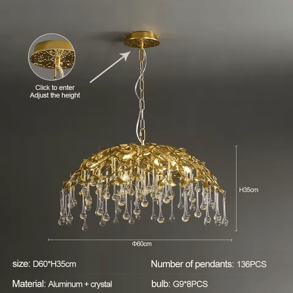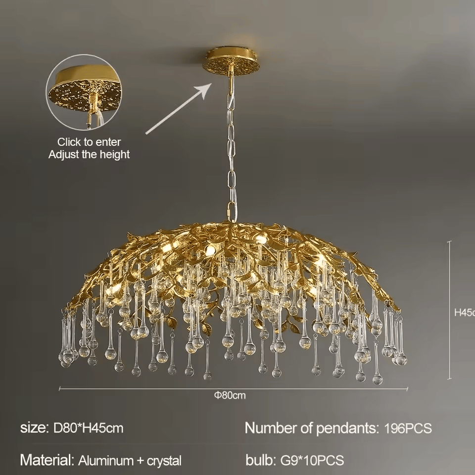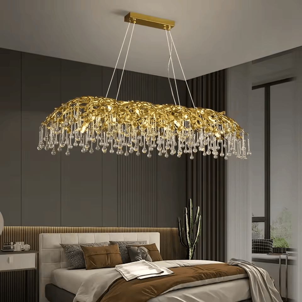 Plafonnier de luxe avec cristaux en pluie : une touche d'élégance pour votre salon
