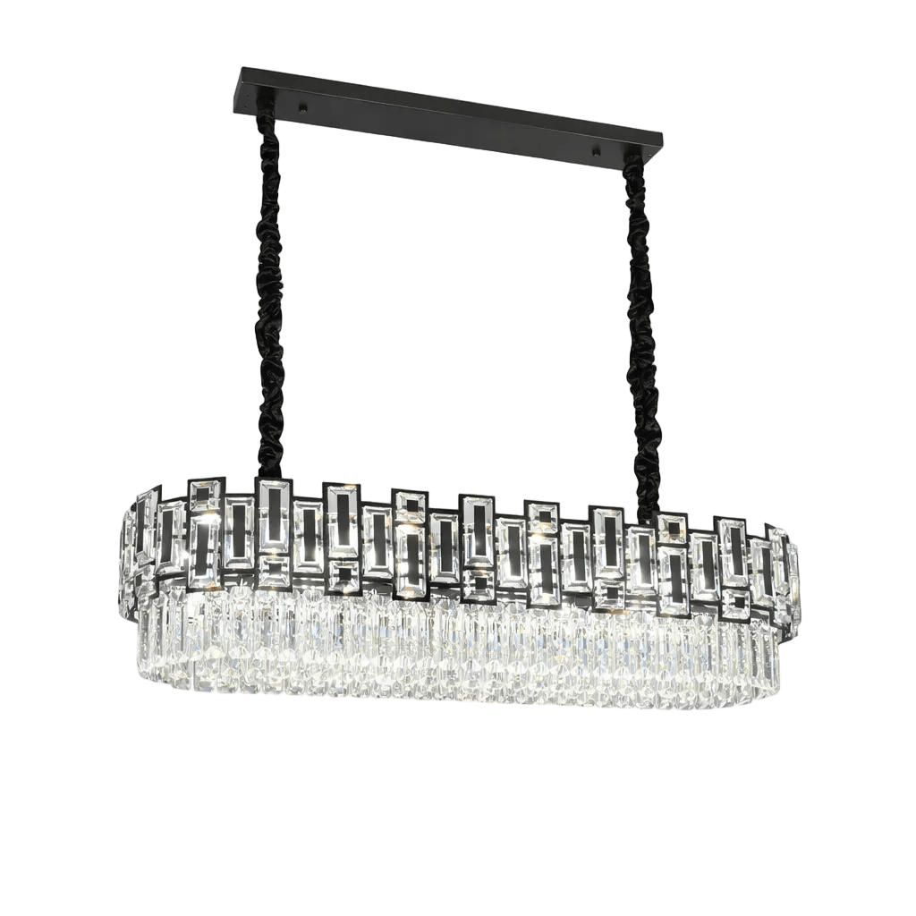 Suspension haut de gamme en cristal et fer conçue pour illuminer votre espace repas avec élégance et créer un éclairage modulable selon vos besoins