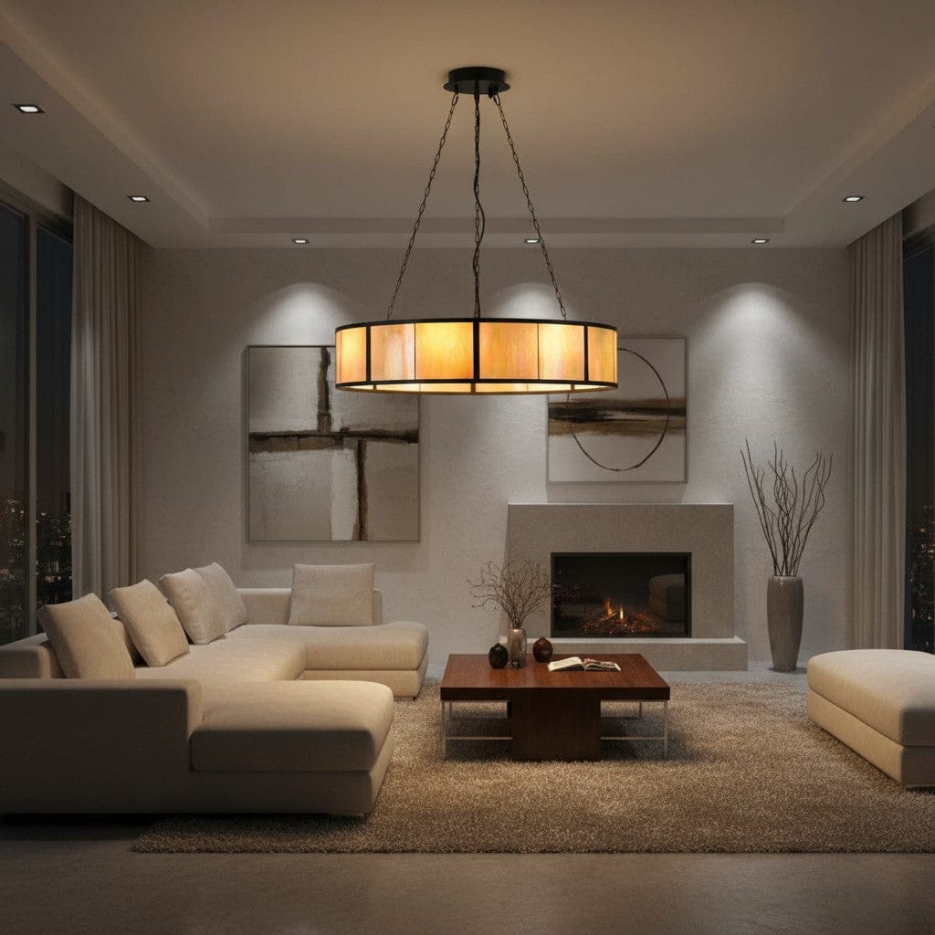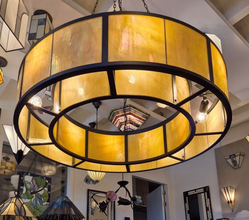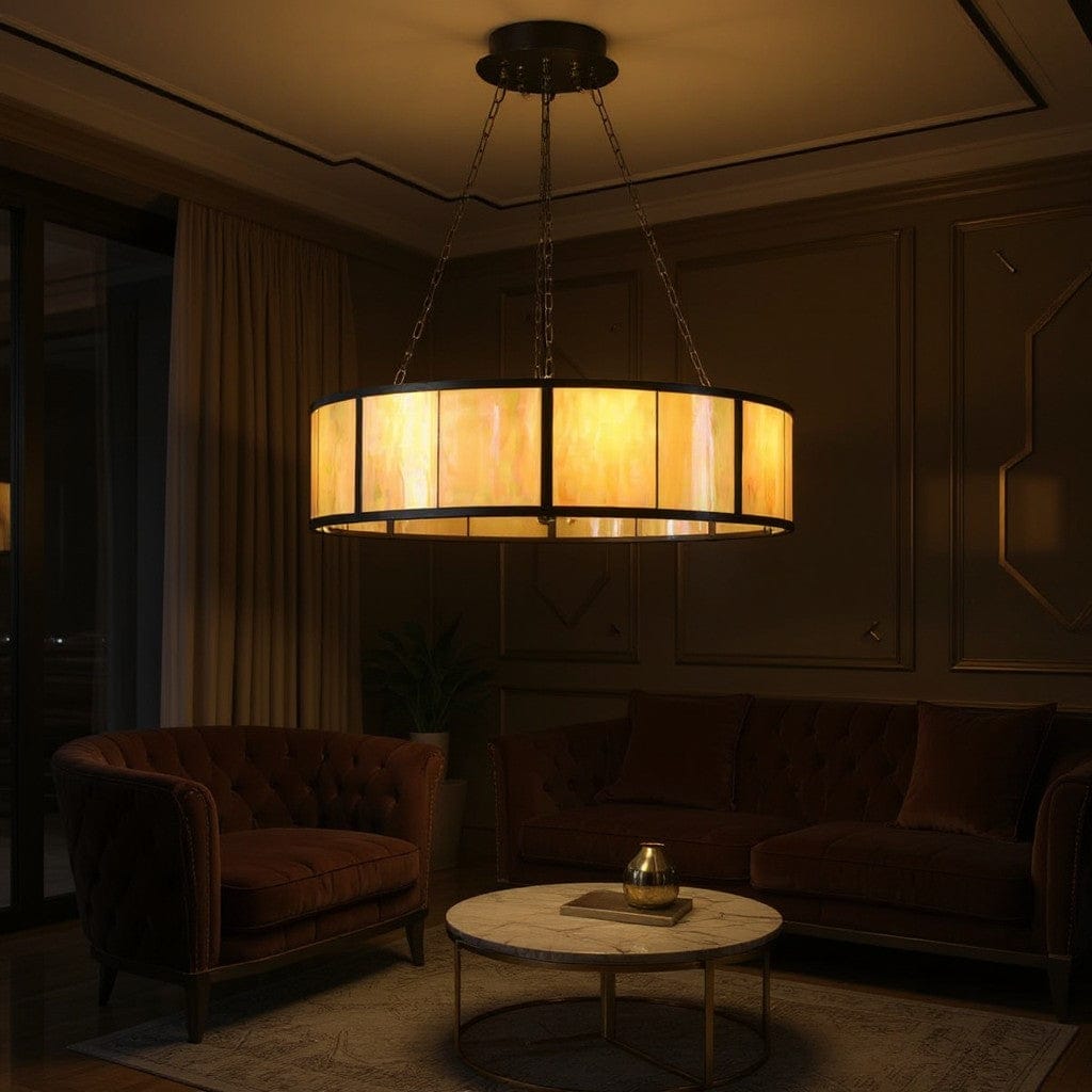 Découvrez une suspension ronde Tiffany conçue pour apporter élégance et lumière chaleureuse à votre salon ou votre espace de vie tout en sublimant votre décoration