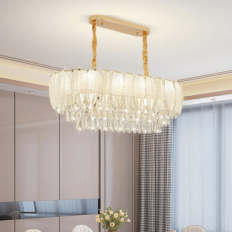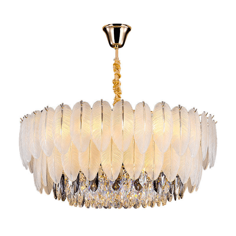 Découvrez un lustre design avec abat-jour en verre, parfait pour illuminer votre salon avec style et élégance contemporaine
