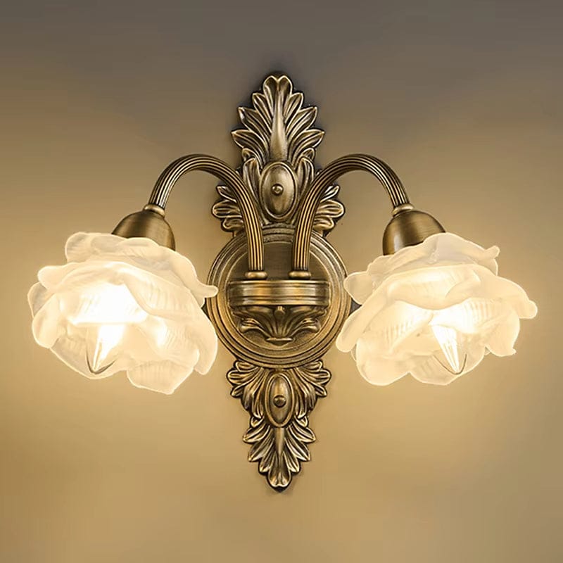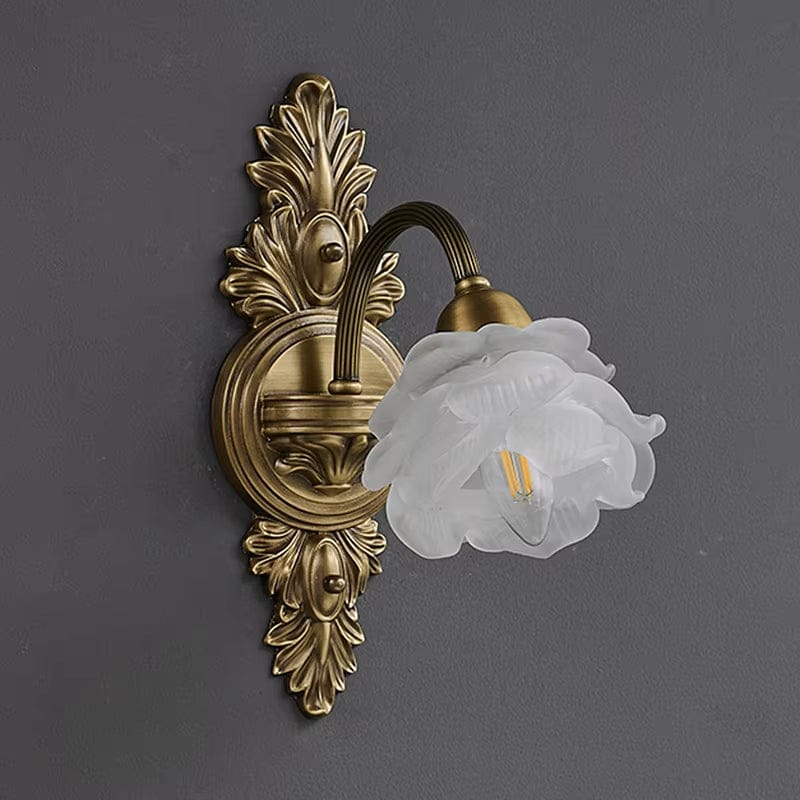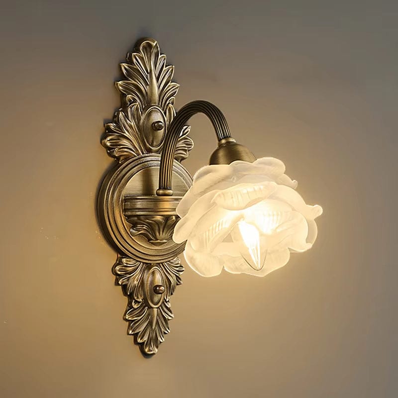 Applique murale rétro en cuivre style médiéval en forme de fleur pour un éclairage LED élégant de chambre, de chevet ou de salon