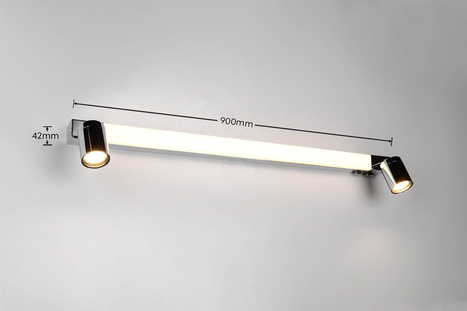 Applique murale LED salle de bain design chromé avec spots latéraux, protection contre l’humidité et variation de température de couleur pour un éclairage élégant et fonctionnel