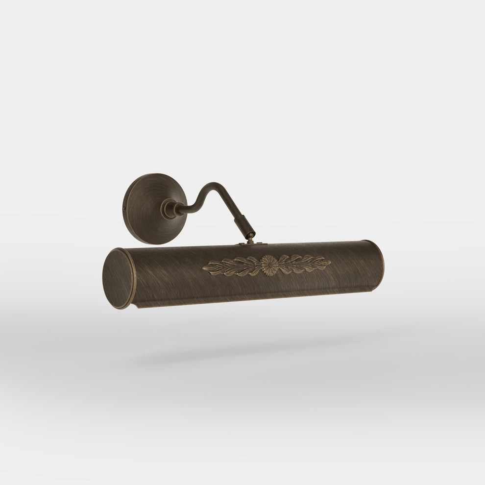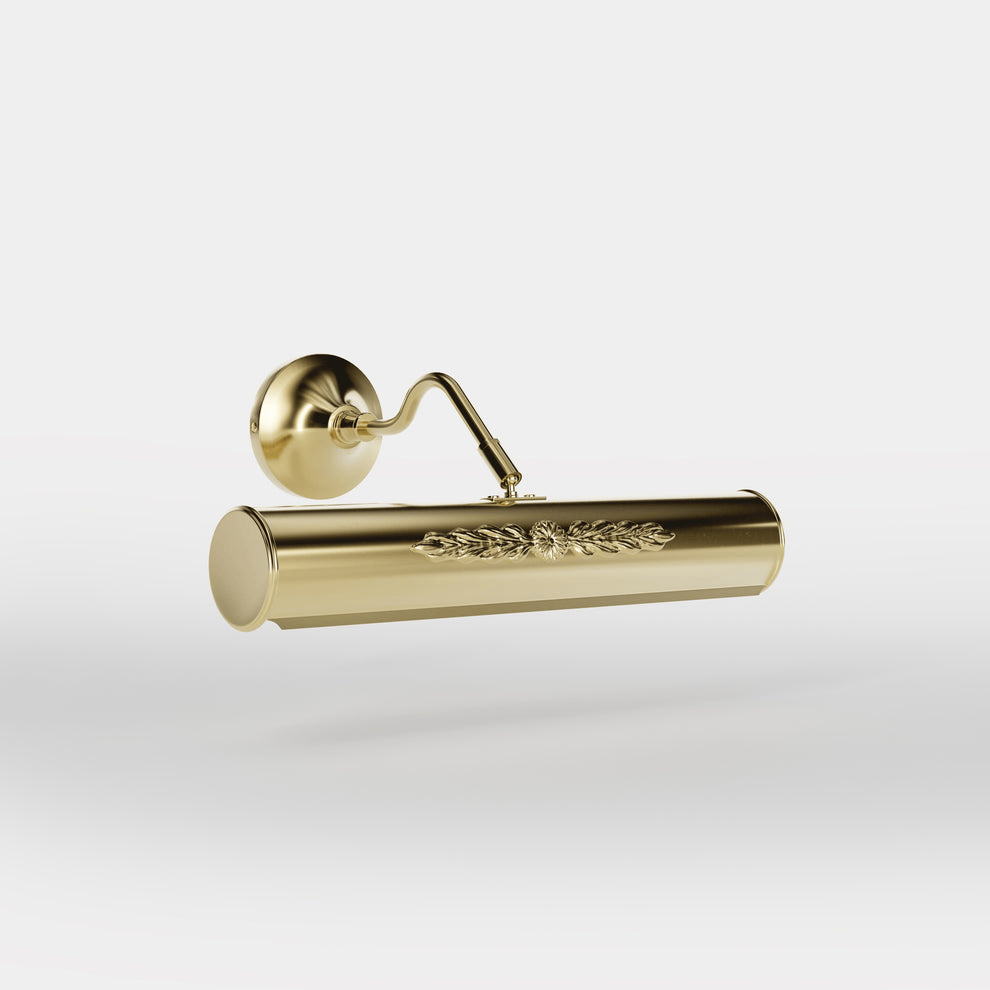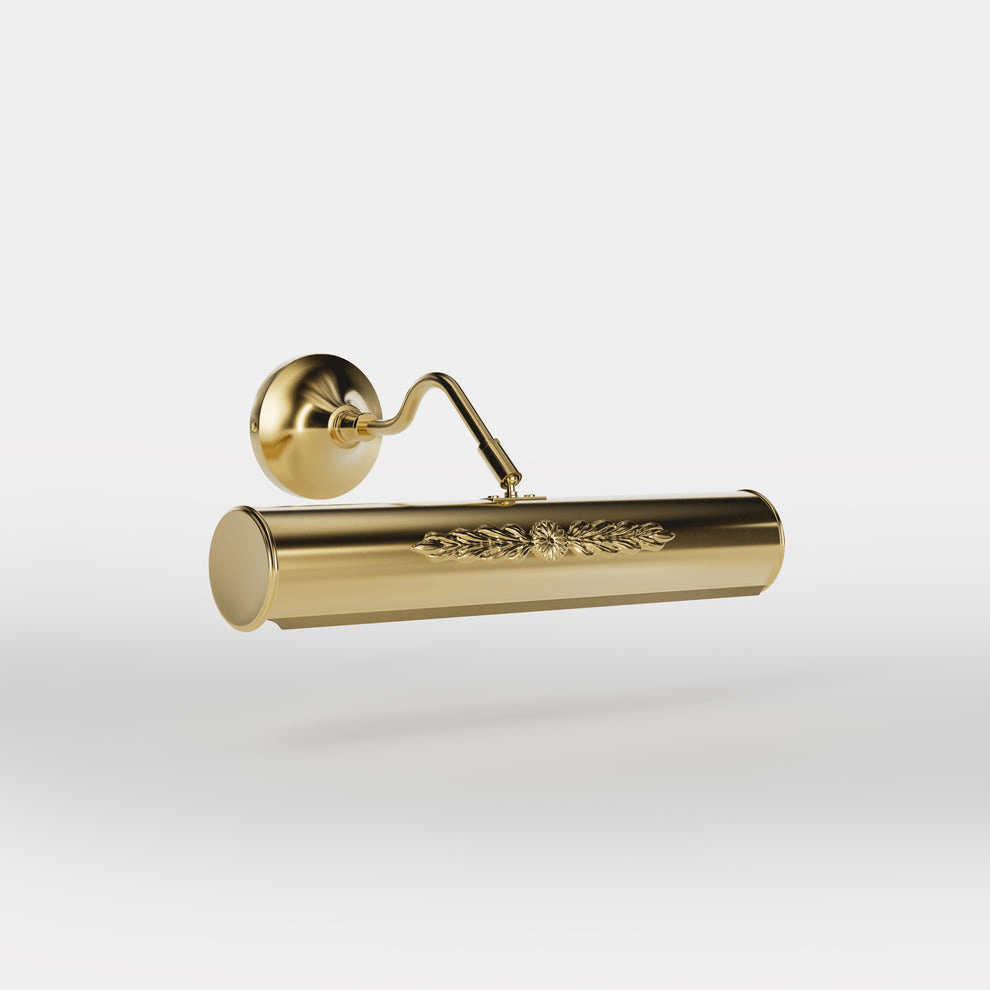 L'Applique Murale Pour Miroir combine l'élégance classique et la fonctionnalité moderne, offrant un éclairage raffiné pour sublimer vos miroirs et objets décoratifs. Son abat-jour cylindrique de 30 cm en laiton doré présente un motif central finement décoré de feuilles et de fleurs, créant une ambiance luxueuse et sophistiquée. Cette applique murale est idéale pour illuminer des miroirs, des œuvres d'art ou des objets décoratifs dans des environnements prestigieux.