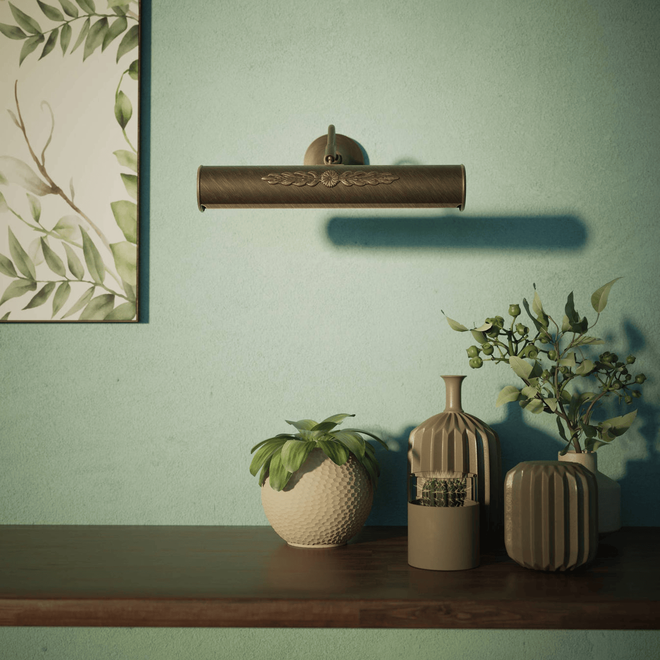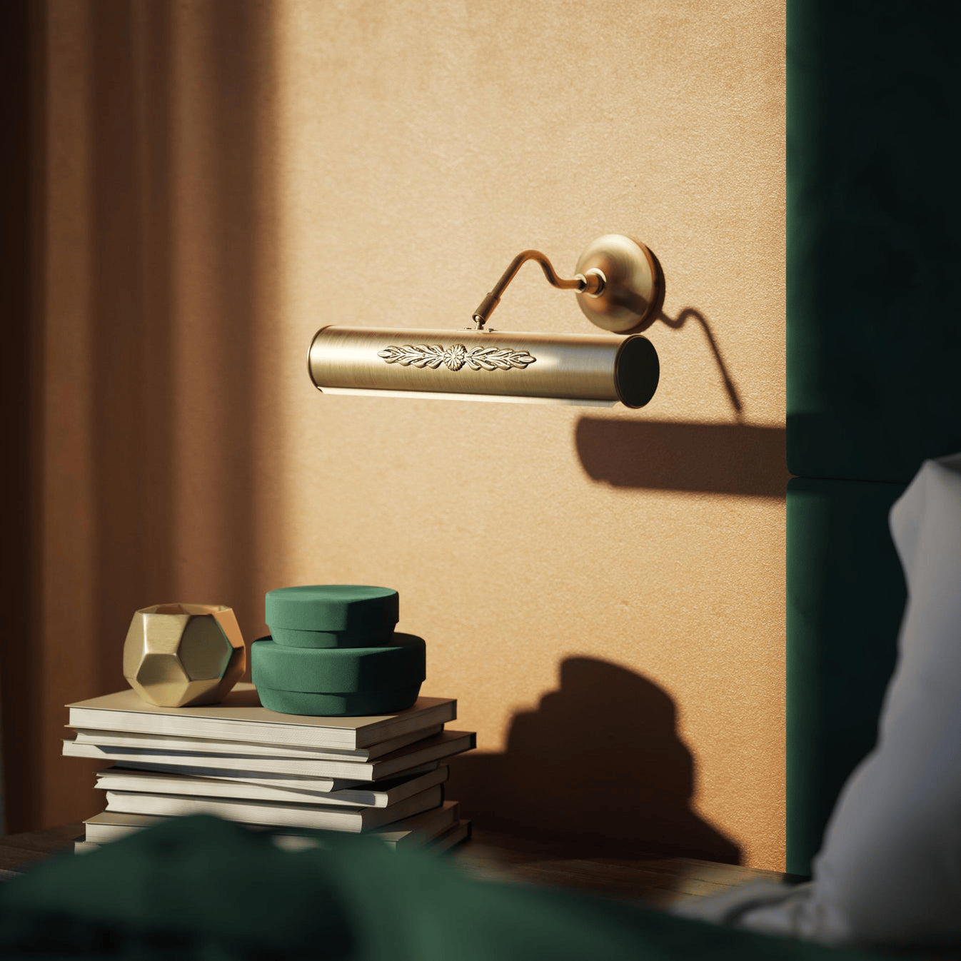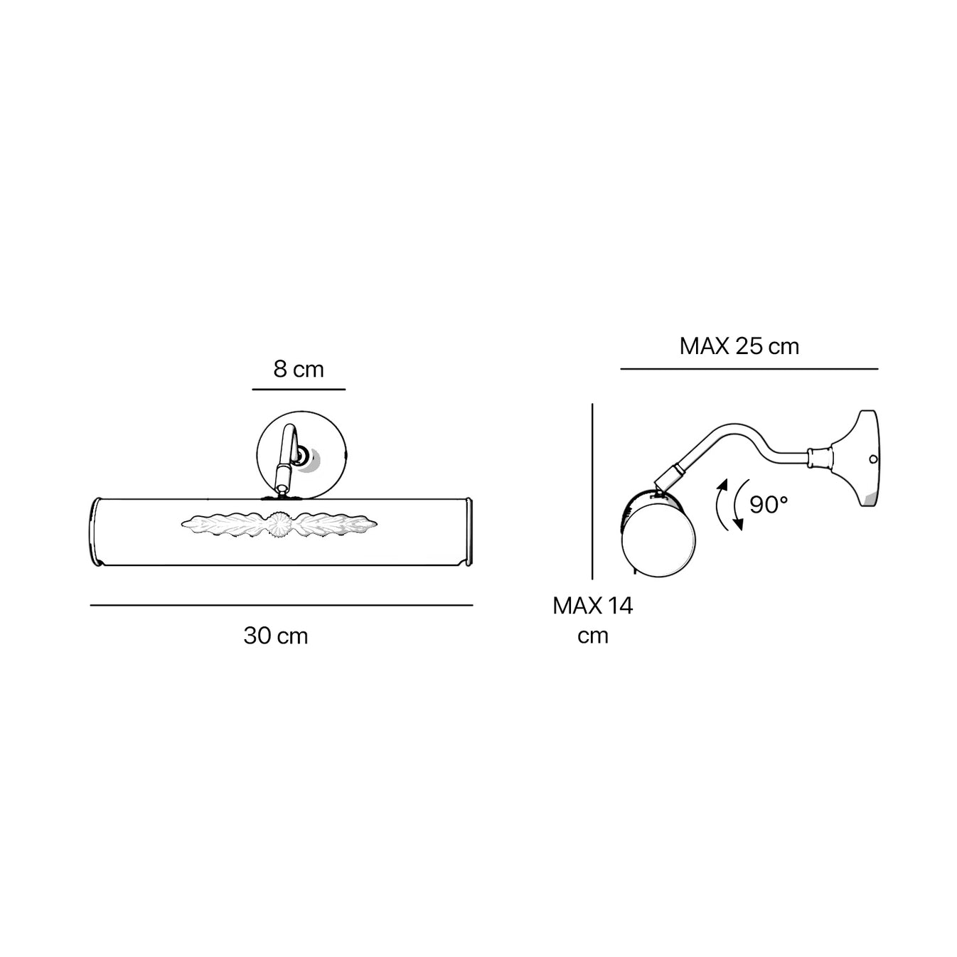 L'Applique Murale Pour Miroir combine l'élégance classique et la fonctionnalité moderne, offrant un éclairage raffiné pour sublimer vos miroirs et objets décoratifs. Son abat-jour cylindrique de 30 cm en laiton doré présente un motif central finement décoré de feuilles et de fleurs, créant une ambiance luxueuse et sophistiquée. Cette applique murale est idéale pour illuminer des miroirs, des œuvres d'art ou des objets décoratifs dans des environnements prestigieux.
