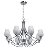 Le design de notre lustre à huit lumières poli brillant en fait un bel ajout à n'importe quel salon. L'utilisation des abat-jour en verre blanc doux et scintillants dissimule les taches résultant des câbles de suspension et produit ainsi une pièce uniformément éclairée sans bandes d'ombre ni lumière diffractée.