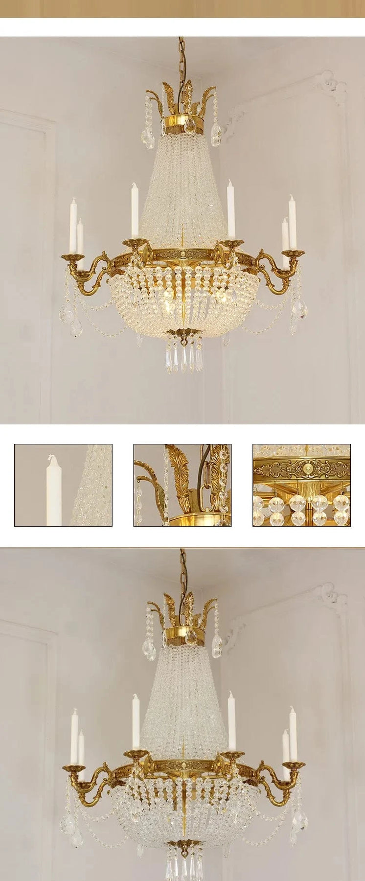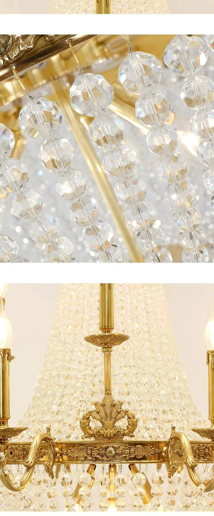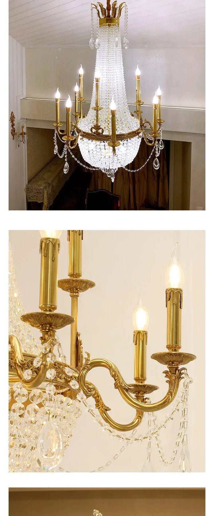 Conçu avec une structure solide en métal et une finition en cuivre poli, ce lustre chandelier grand format diffuse une lumière harmonieuse vers le haut et vers le bas. Grâce à sa compatibilité avec les ampoules LED, il combine efficacité énergétique et style moderne, idéal pour les grandes surfaces.