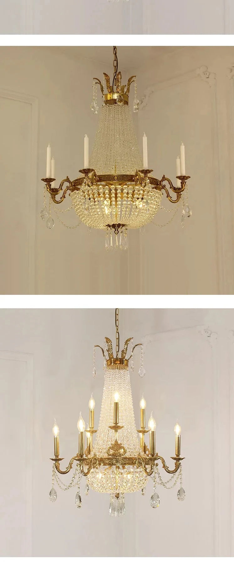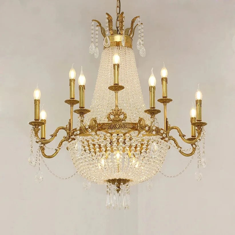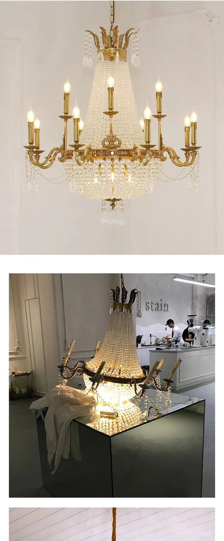 Conçu avec une structure solide en métal et une finition en cuivre poli, ce lustre chandelier grand format diffuse une lumière harmonieuse vers le haut et vers le bas. Grâce à sa compatibilité avec les ampoules LED, il combine efficacité énergétique et style moderne, idéal pour les grandes surfaces.