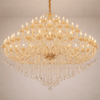Lustre géant en cristal et métal doré au design raffiné conçu pour optimiser la luminosité et valoriser les volumes des grands intérieurs élégants