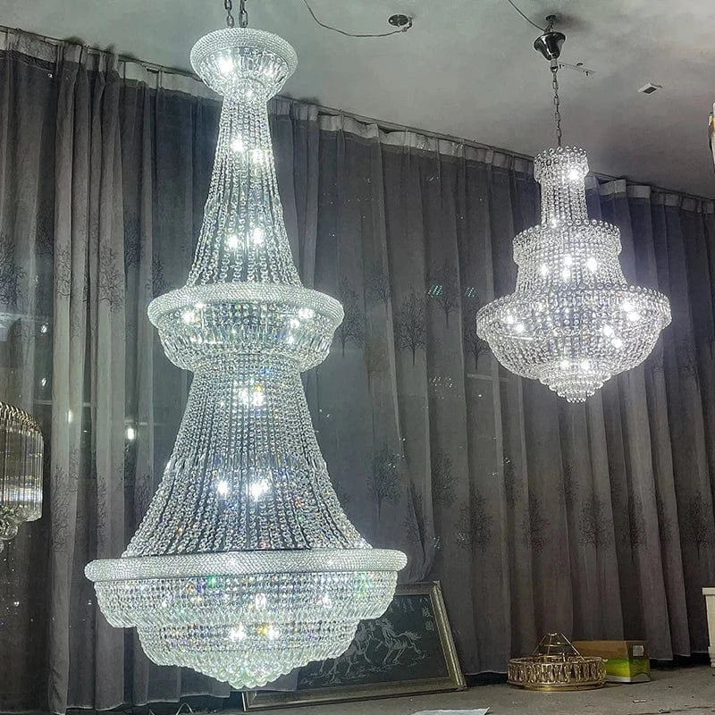 Ce grand lustre pour salles de réception est conçu pour sublimer vos espaces prestigieux. Avec son style moderne et ses détails raffinés en cristal, il apporte une touche de luxe et une luminosité éclatante à vos intérieurs. Idéal pour un salon, un hall d’hôtel ou une salle d’exposition, ce luminaire devient la pièce maîtresse de votre décoration.