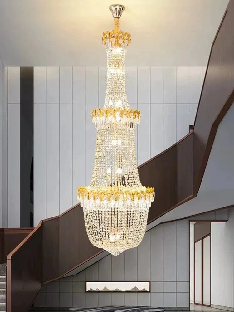 Apportez une touche de prestige à vos intérieurs avec ce grand lustre en cristal doré, pensé pour illuminer avec raffinement les villas, salles de séjour et halls d’hôtels. Son design moderne, associé à une finition en fer plaqué or, en fait une pièce maîtresse qui attire tous les regards.