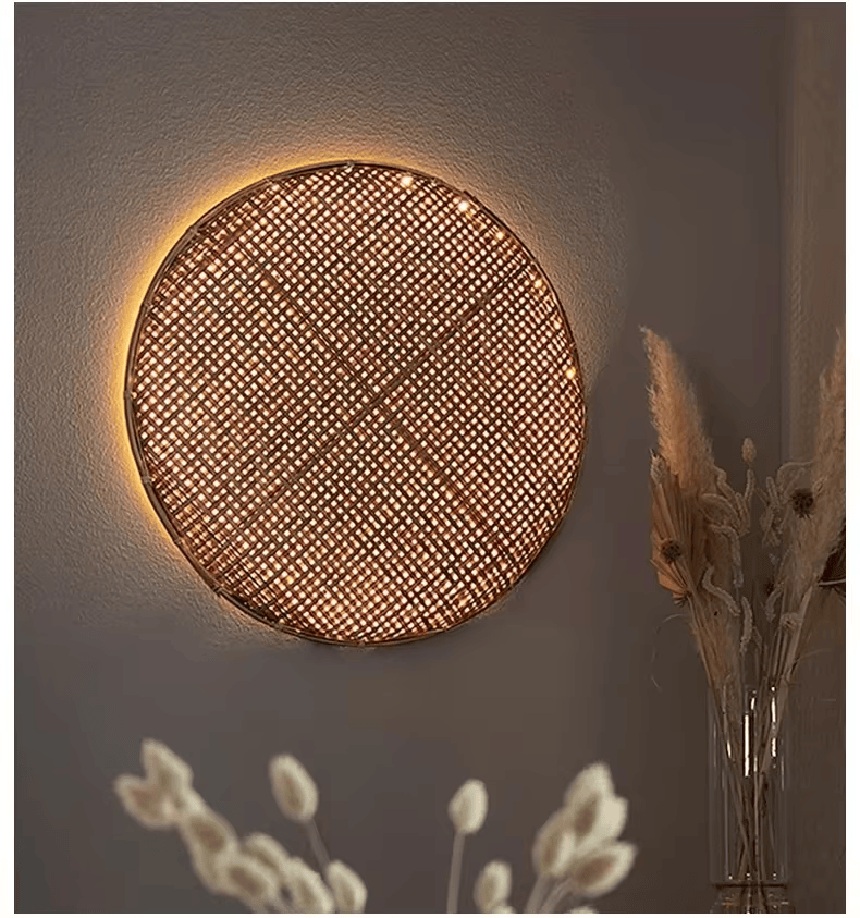 Sa structure légère en rotin et bambou tressé diffuse une lumière douce et chaleureuse, idéale pour créer une ambiance zen dans un salon de thé, un restaurant japonais, une boutique naturelle ou un intérieur au style bohème.