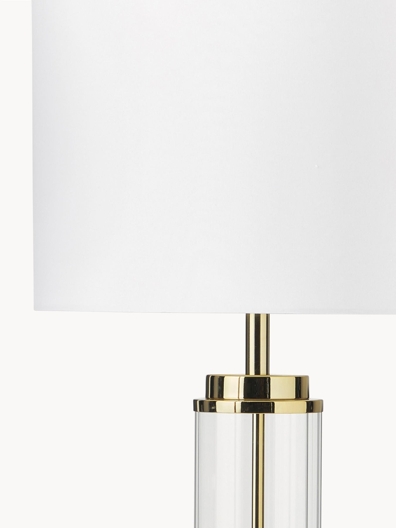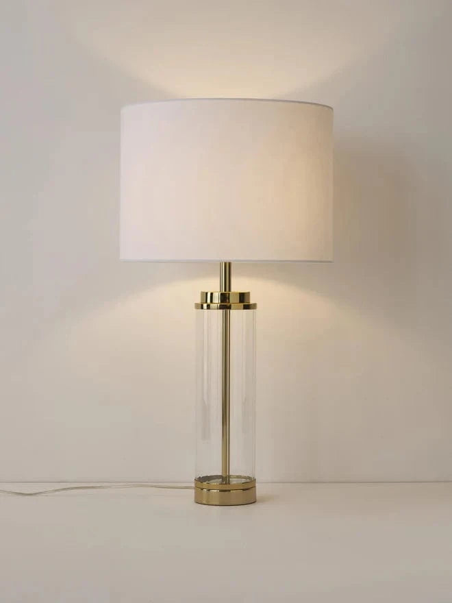 Une lampe blanche sur pied de qualité avec pied en métal doré et verre transparent idéale pour allier style et fonctionnalité