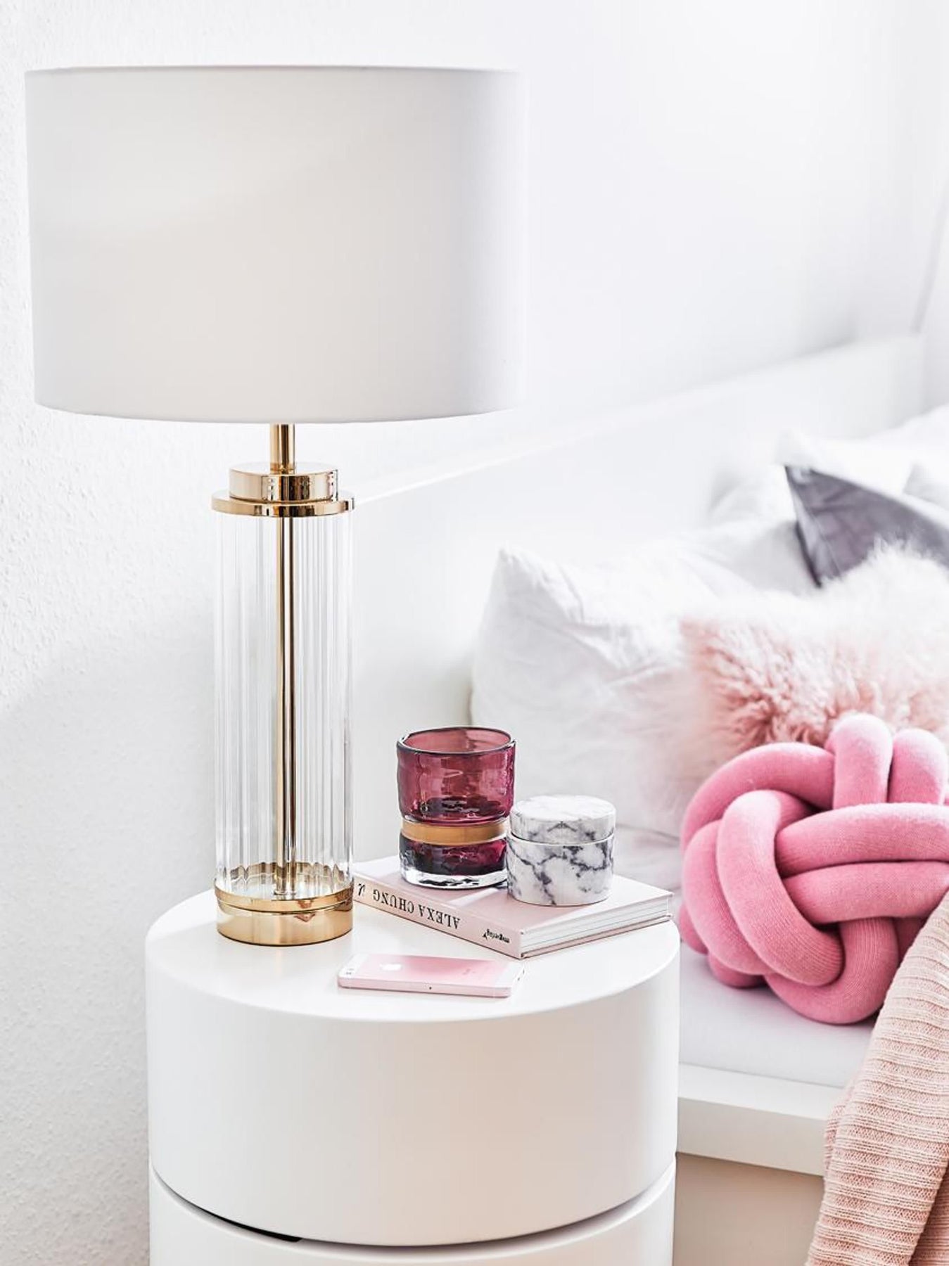 • Couleurs : Abat-jour blanc, pied doré et transparent, câble transparent
