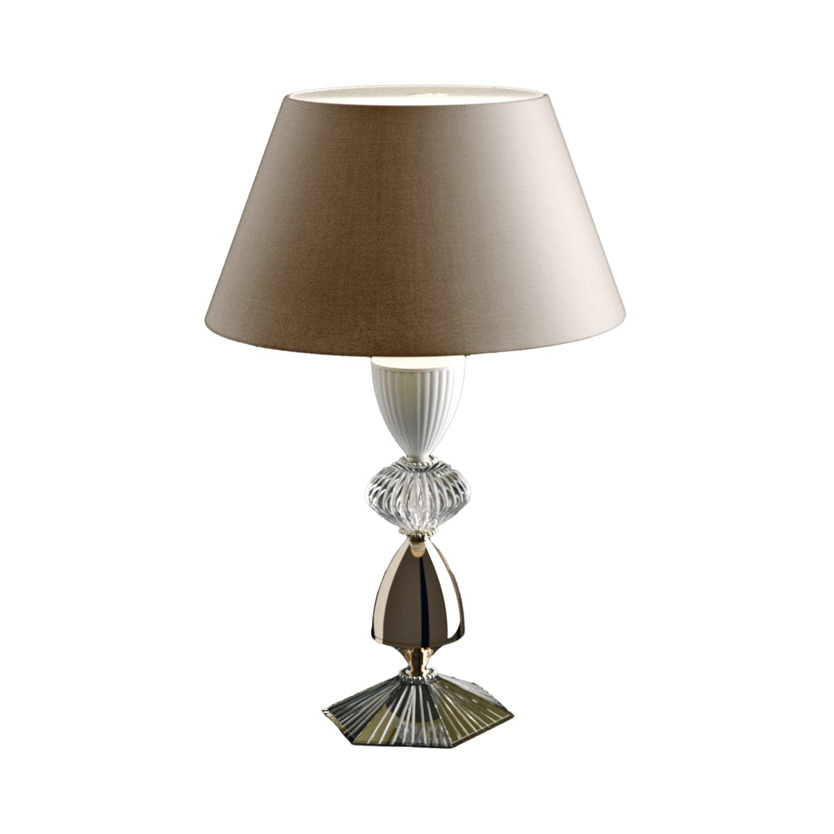Lampe aux tons beige sable et design italien raffiné avec cristal taillé et finitions métal élégantes pour intérieur moderne