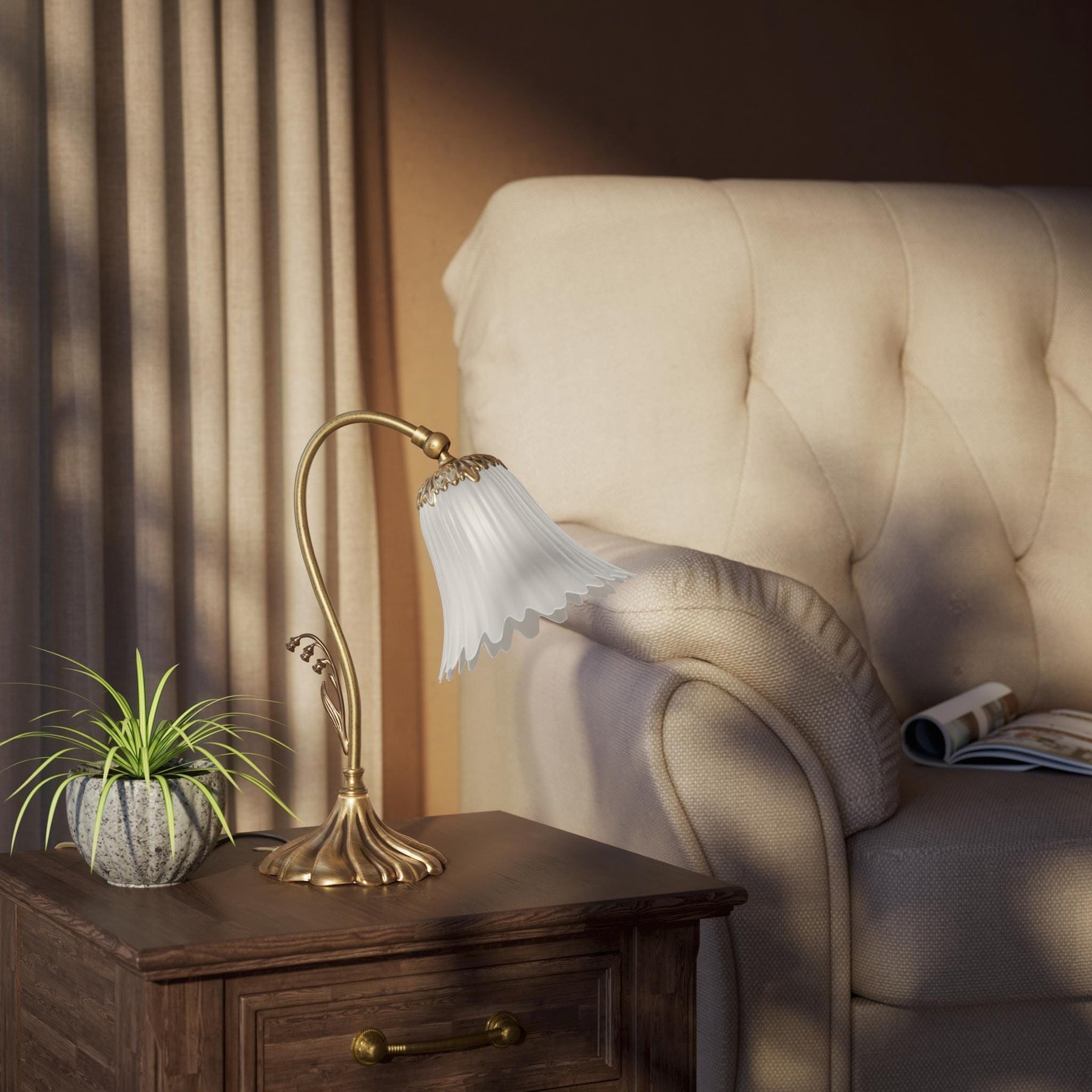Lampe décorative en laiton à abat-jour floral en verre dépoli – Un luminaire artisanal qui sublime votre intérieur avec élégance