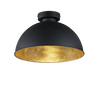 Le luminaire vintage en métal noir et doré. La base est un design circulaire avec un abat-jour rond conçu avec une forme de cloche au sommet.