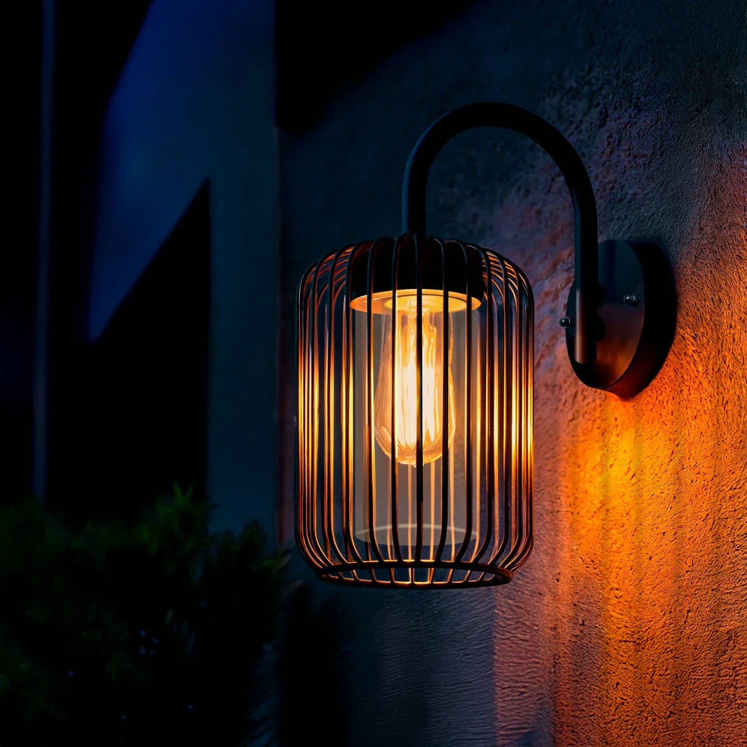 Son abat-jour cylindrique en forme de cage avec barres métalliques fines confère à cette lampe un style industriel chic tout en diffusant une lumière équilibrée. La structure en acier inoxydable assure une protection durable contre la corrosion, idéale pour les environnements extérieurs exposés.