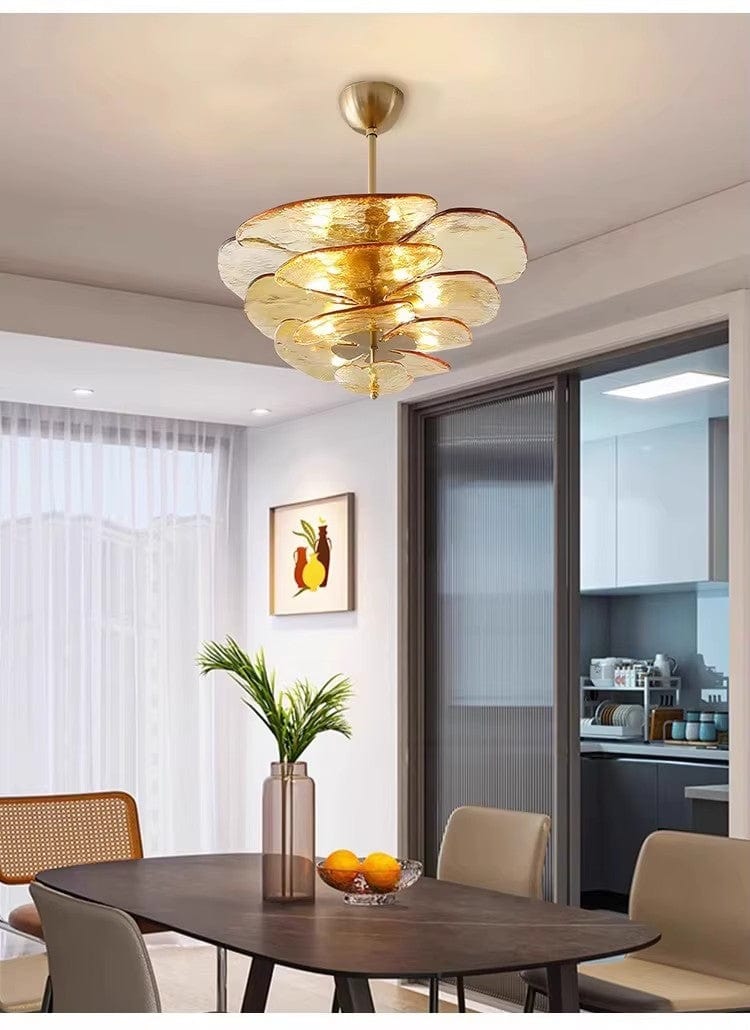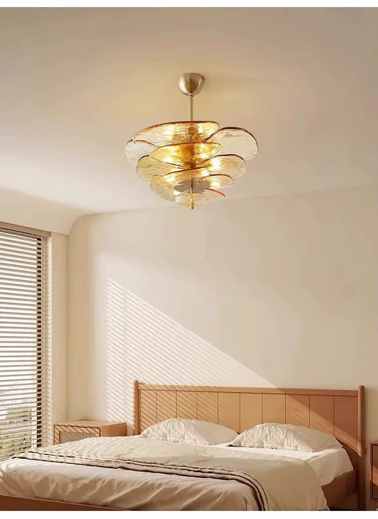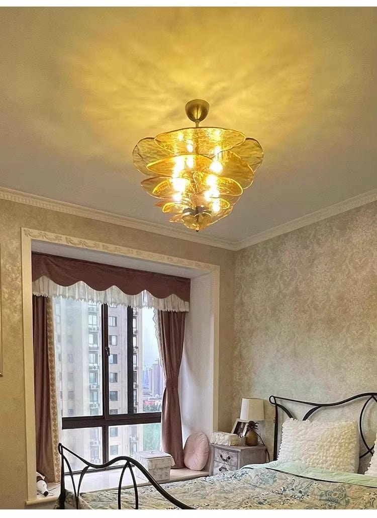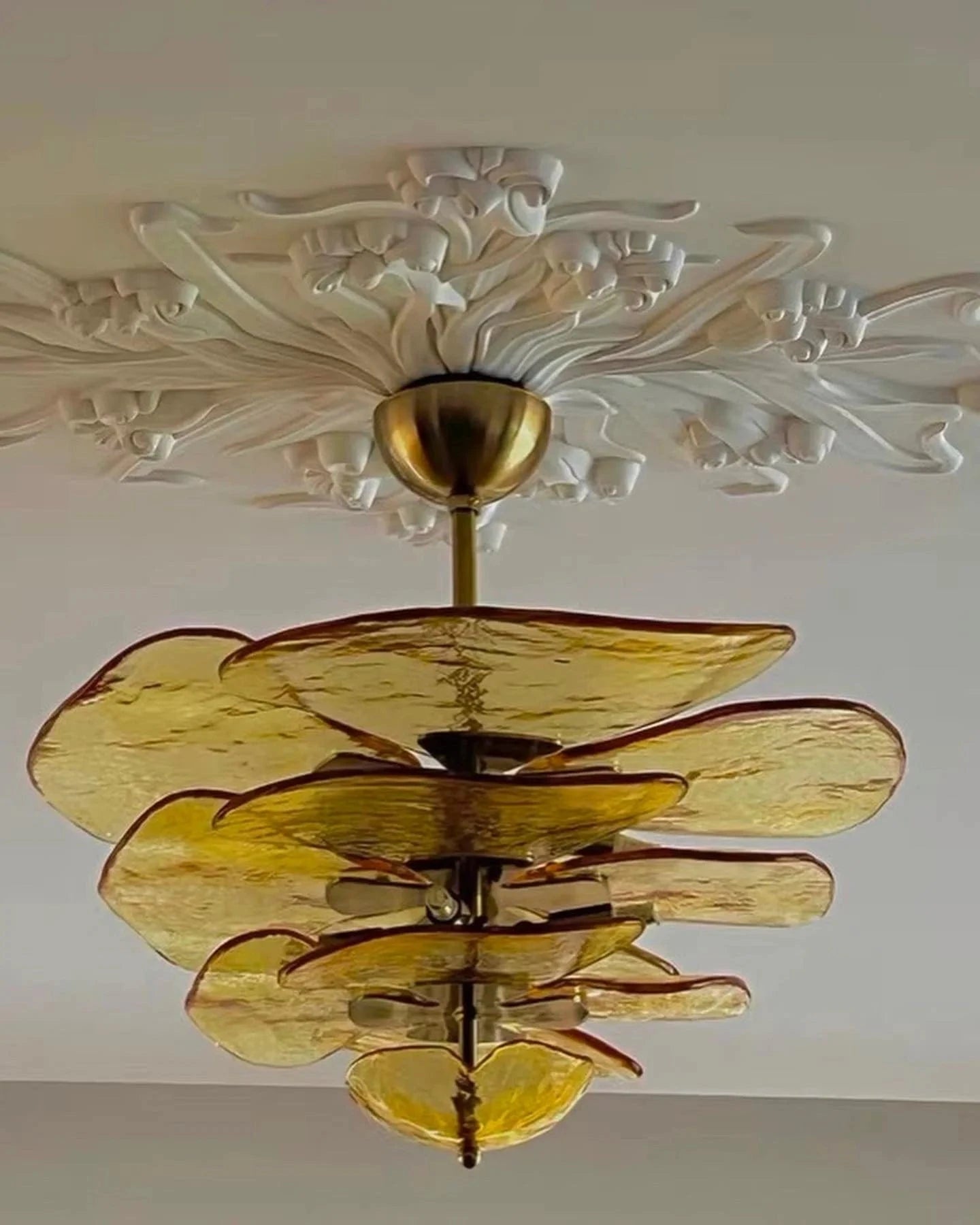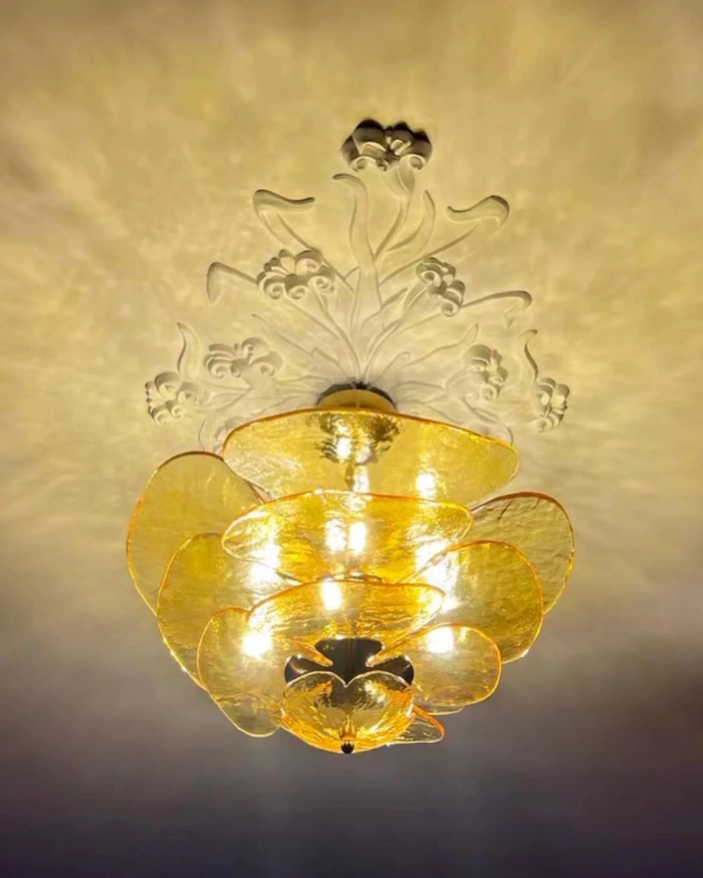 Plafonnier en Verre Teinté Ambre Doré – Design Pétale