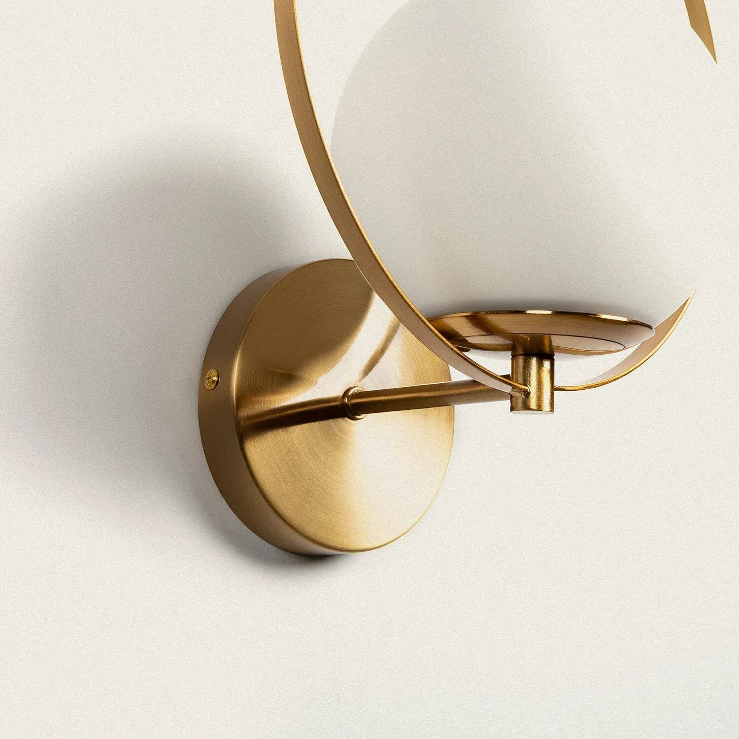 Apportez une touche de sophistication à votre façade avec l’Applique Murale Extérieure Layla en métal doré et verre opale