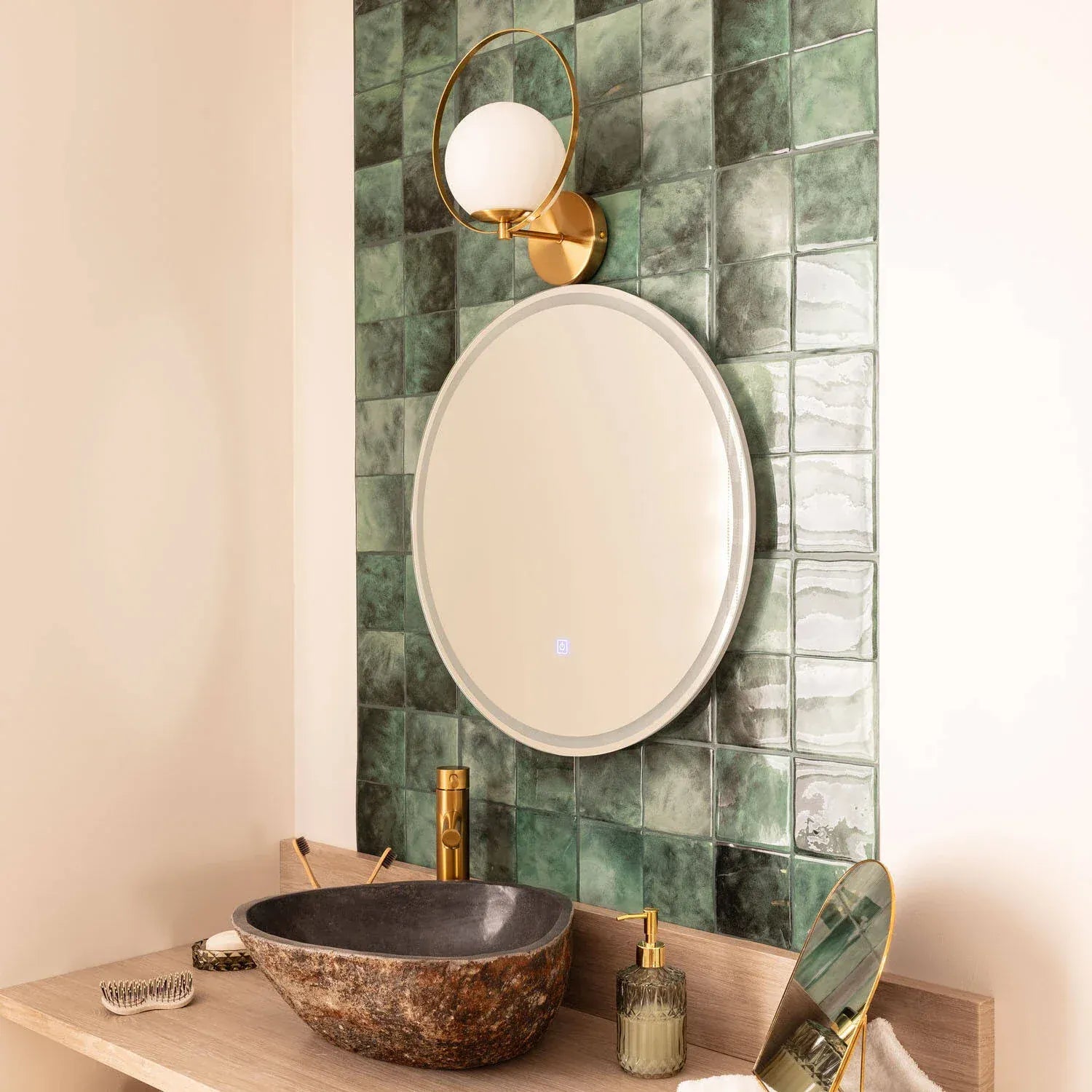Pour maintenir cette protection, il est recommandé de l’installer orientée vers le bas, protégeant ainsi efficacement le porte-lampe. Son corps en métal doré et son verre opale lui confèrent un caractère luxueux et intemporel.