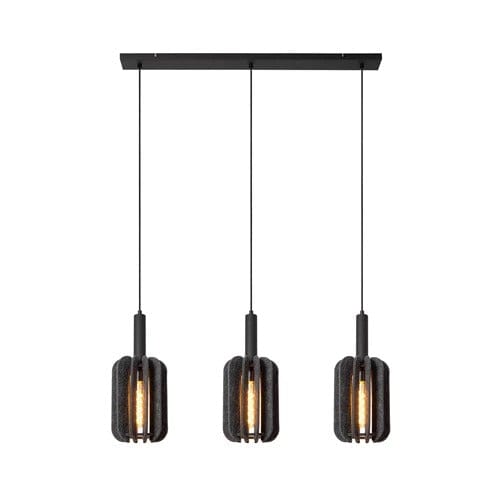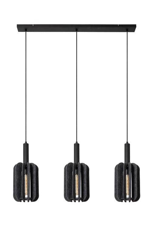 Suspension design Japandi en feutrine grise avec trois points lumineux E27 ajustables en hauteur
