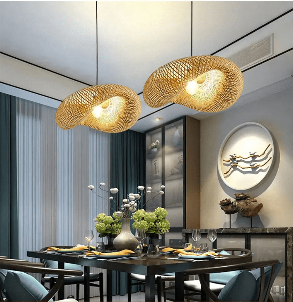 Luminaire Salon Salle à Manger – Suspension Bohème en Bambou et Bois