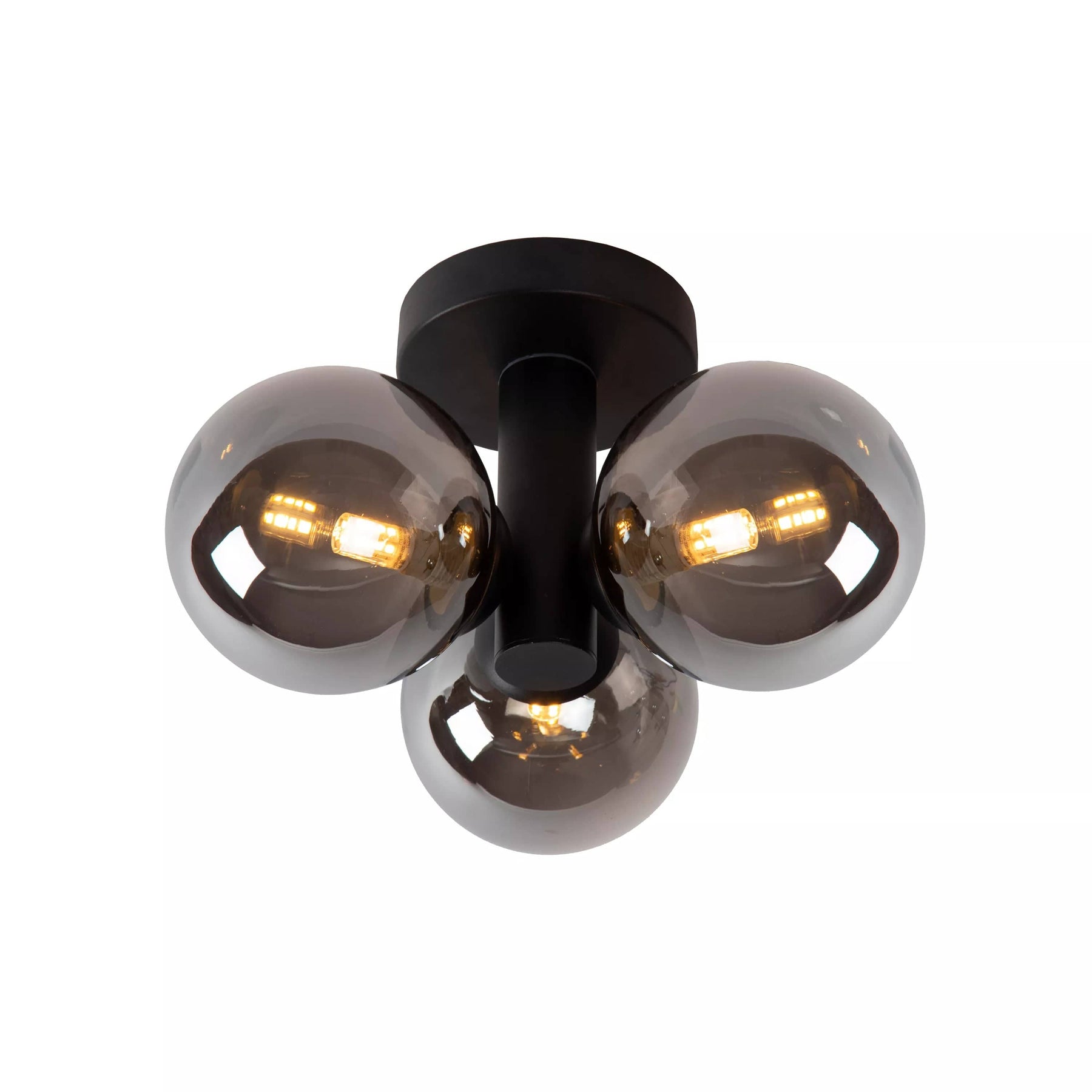 Luminaire de plafond sécurisé pour salle d’eau alliant élégance vintage, verre fumé et diffusion lumineuse homogène