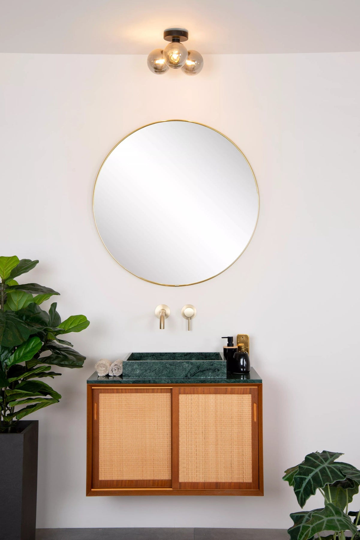 Pensé pour conjuguer esthétique et performance, ce plafonnier rétro noir optimise l’éclairage de la salle de bains tout en renforçant le style de la pièce. Ses globes en verre à finition fumée diffusent une lumière enveloppante, tandis que sa compatibilité avec un variateur d’intensité permet d’adapter l’ambiance selon vos besoins. Sa forme boule, son style vintage et ses matériaux durables en font un choix idéal pour un intérieur recherchant caractère et fiabilité, avec une installation simple et discrète au plafond.