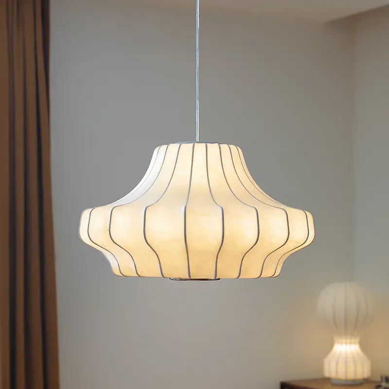 Un luminaire suspendu élégant en soie naturelle, parfait pour créer une ambiance lumineuse harmonieuse et contemporaine