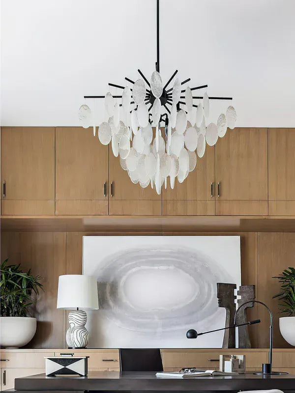 Ces luminaires suspensions design associent suspension moderne, éclairage intérieur et lignes épurées pour créer une ambiance raffinée et actuelle. La combinaison du métal noir et de l’abat-jour en verre blanc ou gris diffuse une lumière équilibrée, idéale pour mettre en valeur une décoration contemporaine. Leur esthétique sobre et graphique s’intègre naturellement dans les intérieurs modernes, en apportant une touche décorative forte sans surcharger l’espace.