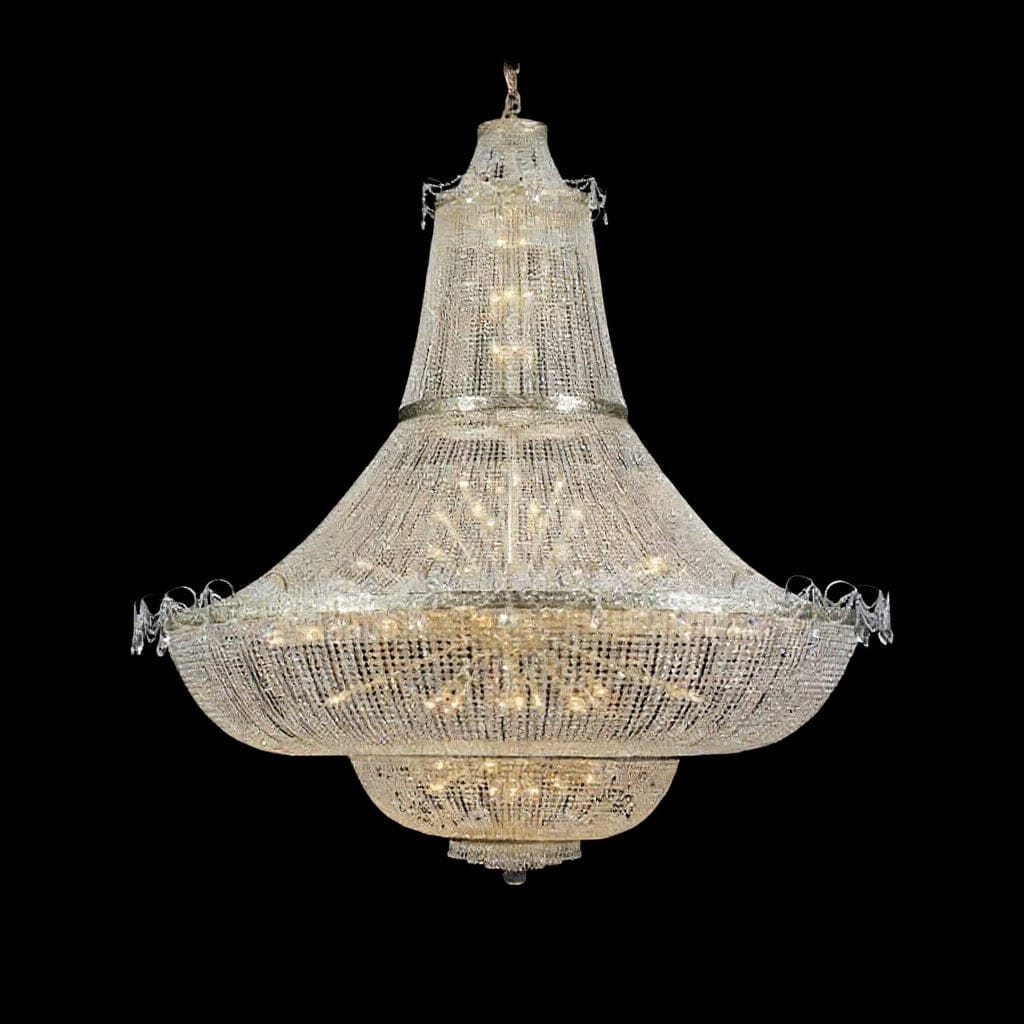 Lustre en cristal 200 cm pour grandes salles de réception avec fabrication européenne et design luxueux