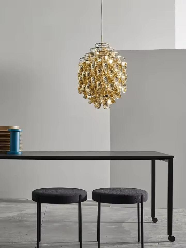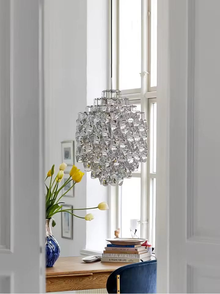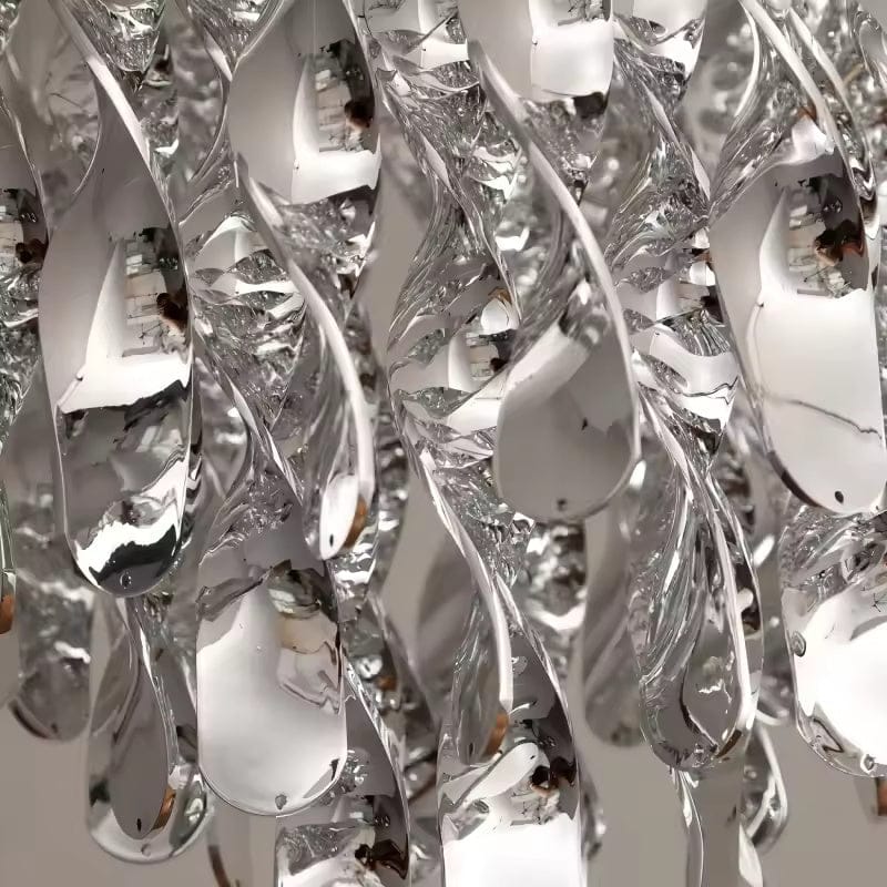 Suspension décorative en cascade spiralée pensée pour sublimer l’éclairage intérieur avec une touche haut de gamme