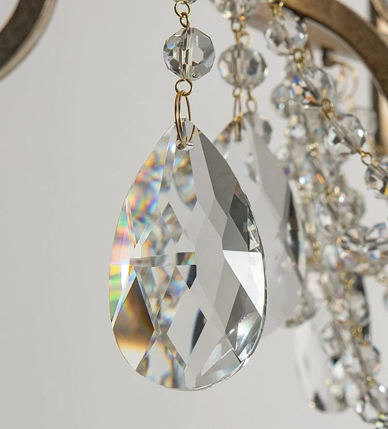 Grâce à son design en cristal, ce lustre diffuse une lumière éclatante aussi bien vers le haut que vers le bas, créant une atmosphère luxueuse et chaleureuse. Compatible avec les ampoules LED E14, il assure un éclairage puissant et économe en énergie.
