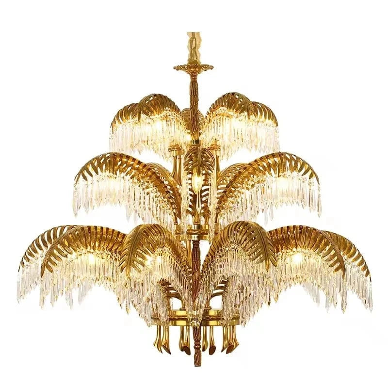 Hand Carving Gold Brass Hanging Pendant Lights Villa Living Room Luxury Crystal Palm Chandelier