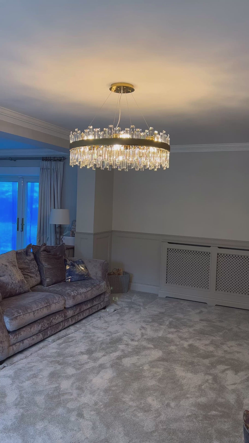 Lustre circulaire en cristal pour ERP offrant un éclairage modulable et une esthétique contemporaine valorisante