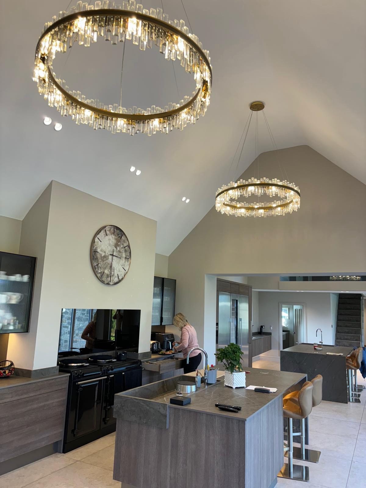 Luminaire professionnel en cristal conçu pour valoriser les volumes, renforcer l’image de marque et optimiser l’ambiance lumineuse